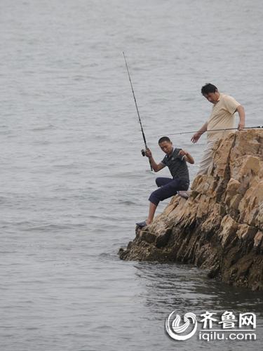 月牙灣景區(qū)附近悠閑的海釣者