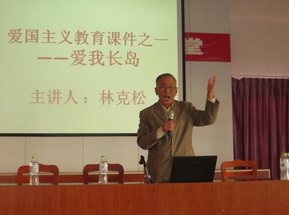 說起林老,可是煙臺長島的名人。他,生在長島,長在長島,家鄉(xiāng)深厚的文化底蘊(yùn)及其豐富的人生閱歷,賦予了林老淵博的學(xué)識;為了保衛(wèi)長島,他離開了山東長島,17年的軍旅生涯,鍛造了他軍人的剛毅與執(zhí)著;為了回報長島,他又回到了長島;30年來,他致力于挖掘提煉長島文化精髓,為展現(xiàn)長島、豐富長島文化生活,為來島游客增添情趣、傳遞正能量,為打造國際休閑旅游度假島,做出了不可磨滅的貢獻(xiàn),被游客親切的譽(yù)為“長島第一導(dǎo)”和“長島導(dǎo)爺”。他的導(dǎo)游風(fēng)格獨(dú)特,那些隨景拈來、即興吟誦的佳作皆成一絕,一山一水在他聲情并茂的解說下,瞬間變得生動而鮮活。他參與的《走進(jìn)長島》、《情灑長島》、《話說長島》曾在央視中文國際頻道等電視臺播出;他的導(dǎo)游藝術(shù)曾被多家報刊登載,這樣的名聲,堪稱大腕。林老學(xué)識淵博,著述頗豐,事業(yè)上有建樹,品高德厚,非常關(guān)心和重視青少年的健康成長。他不但同學(xué)們上了一堂生動有趣的思想道德教育課。更是極大地激發(fā)了我們熱愛家鄉(xiāng)的熱情。正像孫淑芳與楊學(xué)寬在散文《一個人和他的家鄉(xiāng)》中寫道的那樣:“因?yàn)殚L島聞名天下,使很多人結(jié)識了林克松,也因?yàn)殚L島有了林克松這樣的人,使長島有更多的天下朋友、游客為之傾情?!?