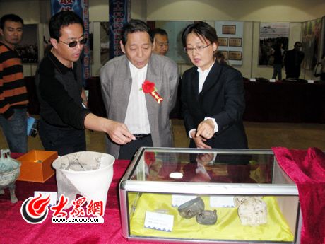 24日,長島縣在省科技館舉行“科學(xué)發(fā)展在長島”招商旅游推介展覽,圖為解說員向參觀者介紹長島出土的部分文物