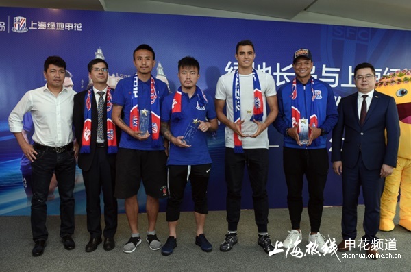 上海熱線申花頻道訊 2017年6月26日14時(shí),長(zhǎng)島漁家樂(lè)綠地長(zhǎng)島與上海申花足球俱樂(lè)部戰(zhàn)略合作簽約儀式在申花康橋訓(xùn)練基地隆重舉行。上海綠地申花足球俱樂(lè)部常務(wù)副總經(jīng)理周軍;上海綠地申花足球俱樂(lè)部副總經(jīng)理徐維;綠地集團(tuán)事業(yè)二部總經(jīng)理助理、營(yíng)銷總監(jiān)許寧;綠地集團(tuán)事業(yè)二部市場(chǎng)營(yíng)銷部區(qū)域總監(jiān)周夏暉等雙方領(lǐng)導(dǎo),山東長(zhǎng)島以及申花球員瓜林、莫雷諾、毛劍卿、曹赟定共同出席了本次簽約儀式,共鑒這一重要時(shí)刻。