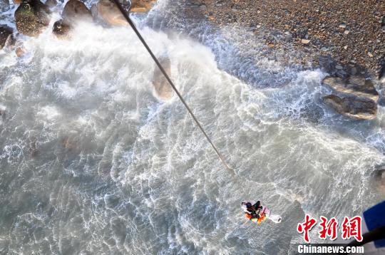 圖為救助直升機抵達事發(fā)現(xiàn)場上空。 謝元蕾 攝