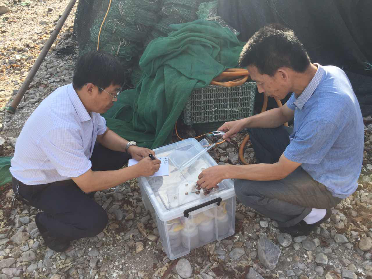 縣水產(chǎn)研究所專家于7月25日下午對北隍城海區(qū)浮游生物情況進行拖網(wǎng)調(diào)查,長島漁家樂并對試養(yǎng)的新品種風(fēng)信標(biāo)扇貝和港灣扇貝生長情況進行查看。本次調(diào)查共設(shè)4個取樣點,每點取1個水樣。通過對檢測結(jié)果的分析研究,對是否進行海區(qū)扇貝半人工采苗提供科學(xué)依據(jù)。
