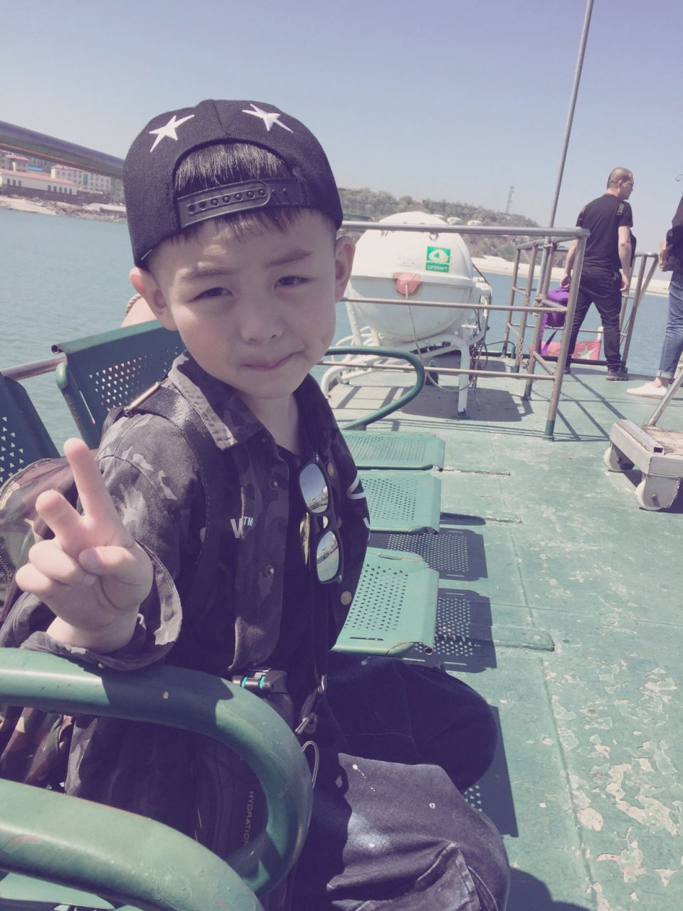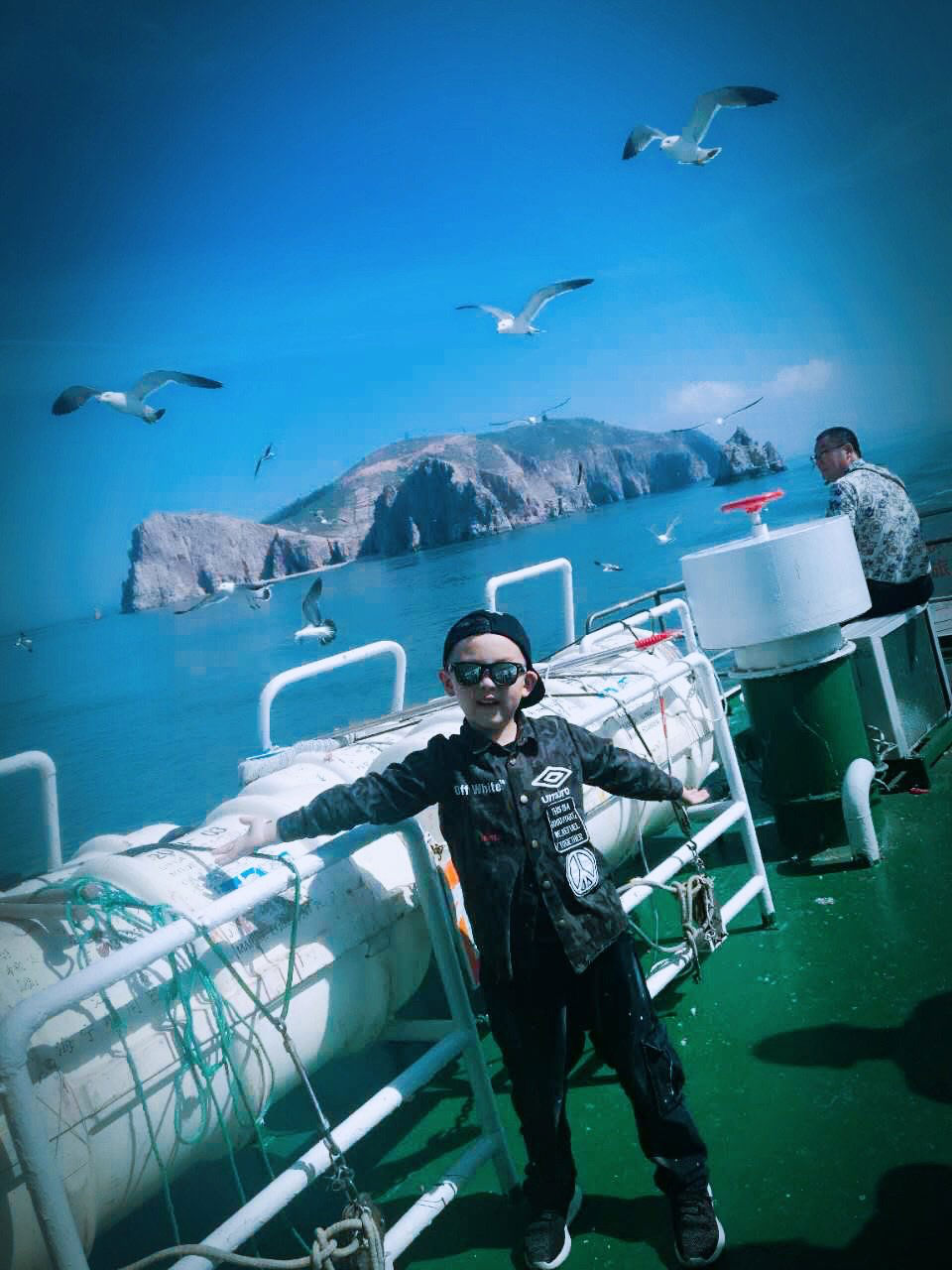 注:5月的天氣還不是很熱,船駛?cè)氪蠛V醒脒€是有點(diǎn)冷哦,總之穿短袖的我們被凍成狗樣,備件外套準(zhǔn)沒(méi)錯(cuò)。