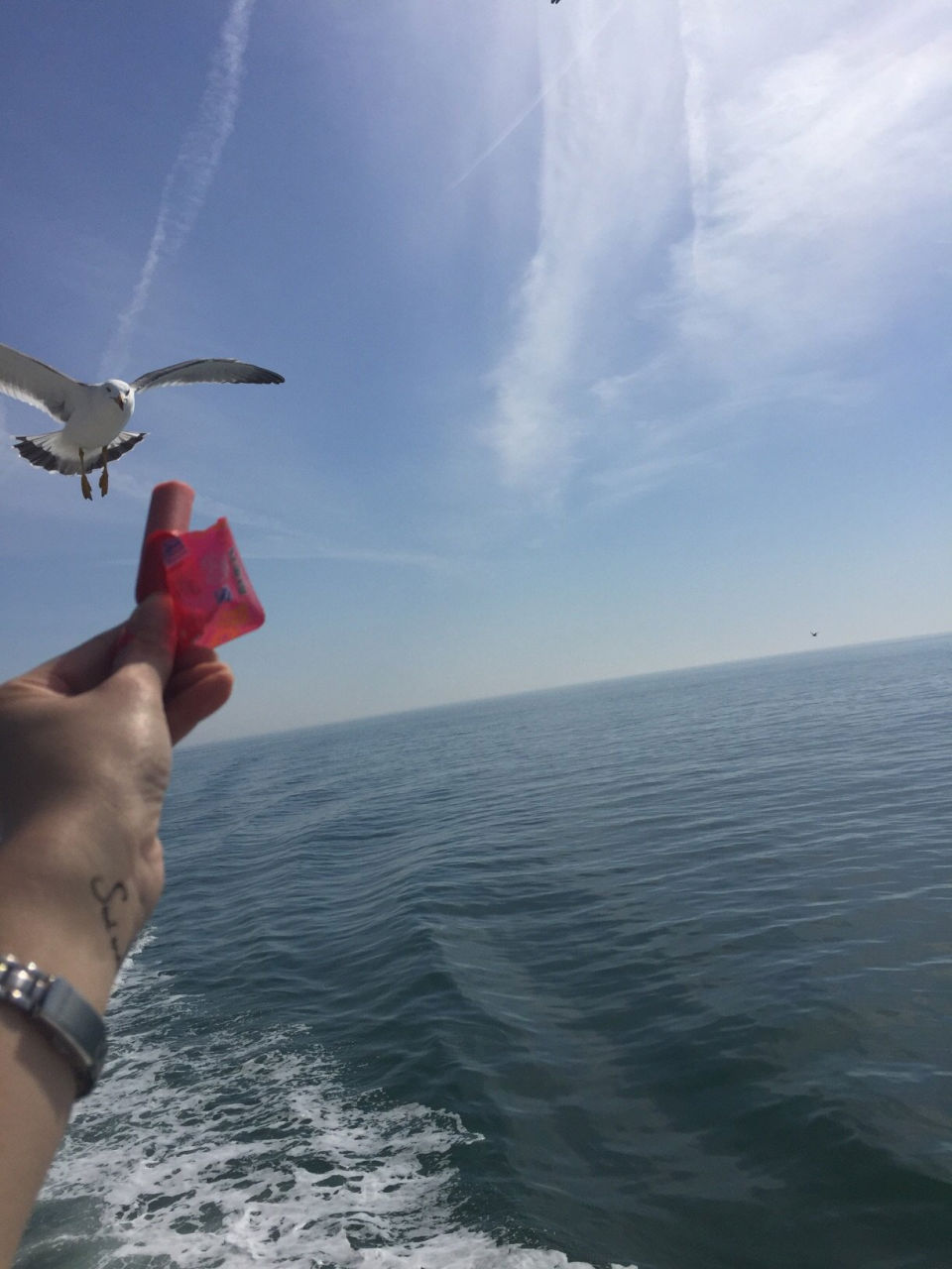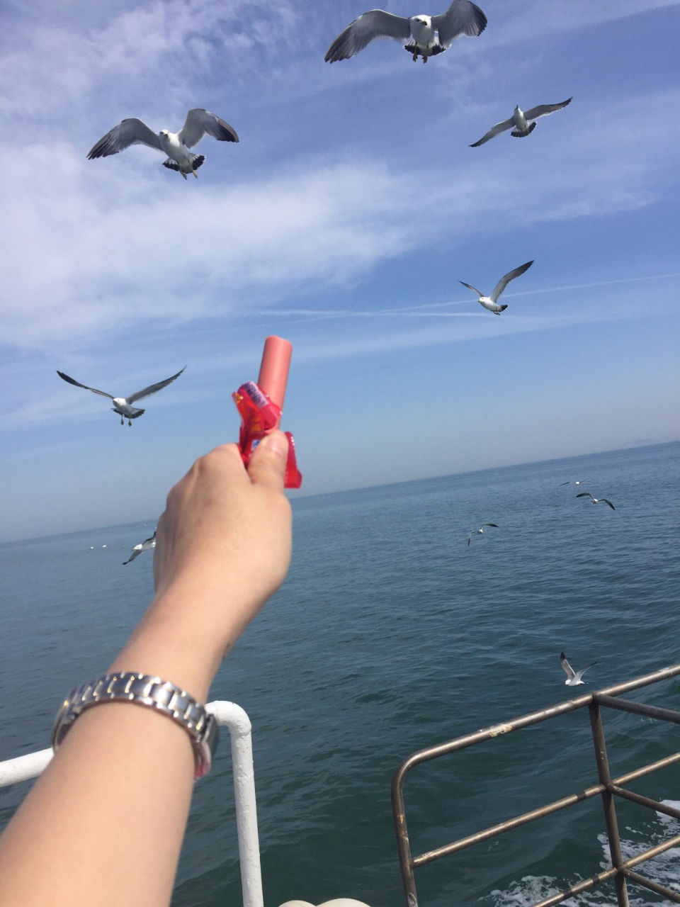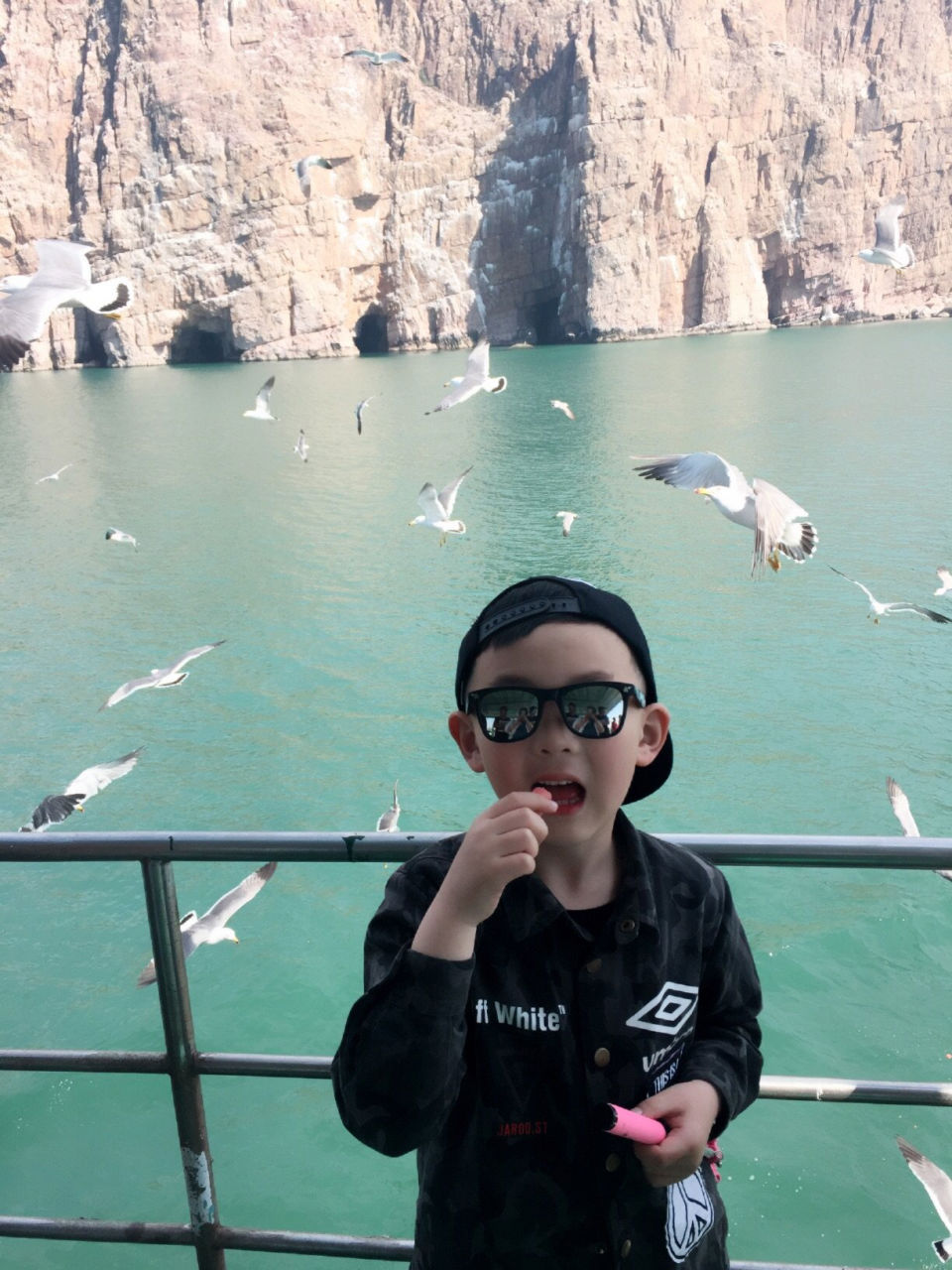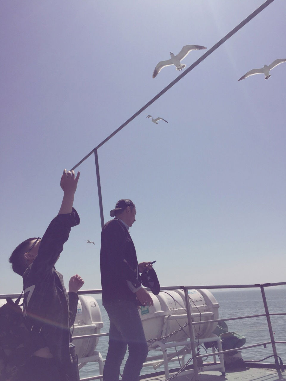 前往萬(wàn)鳥(niǎo)島需2個(gè)小時(shí)左右的航程,沿途風(fēng)景很美,途徑幾個(gè)小島。花30元落坐頂層貴賓席,可以更近距離的接觸海鷗,兒童免費(fèi)。越接近萬(wàn)鳥(niǎo)島海鷗越多,覓食的膽量也更大,拿出事先準(zhǔn)備好的火腿腸(碼頭有的買(mǎi),10元一袋),長(zhǎng)島旅游攻略開(kāi)始喂海鷗嘍。