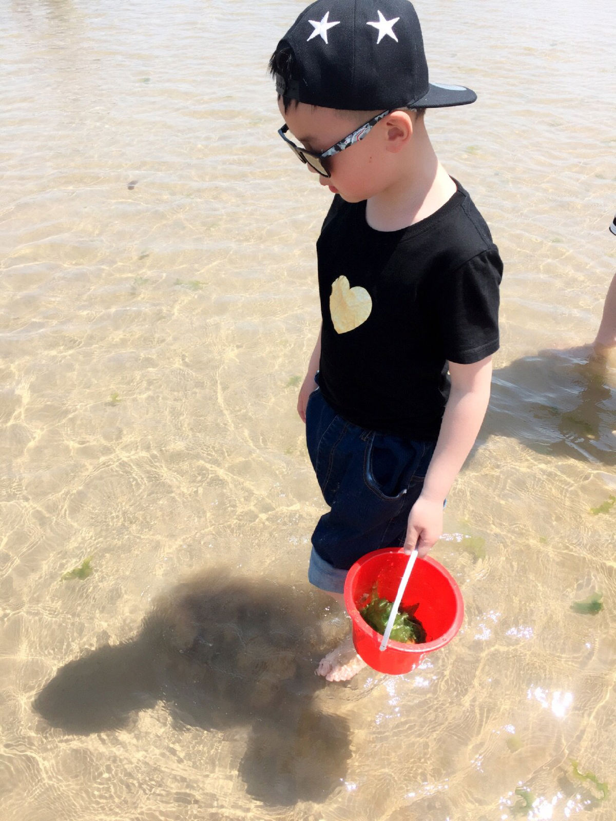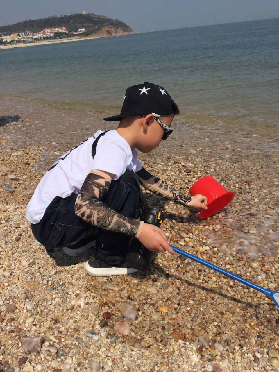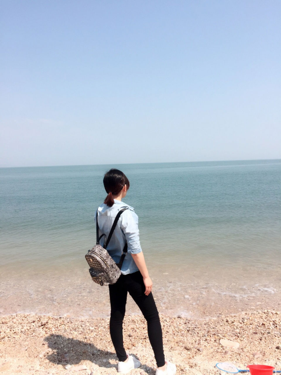 陳小帆手上的水桶與網(wǎng)門(mén)口10元一套,老板說(shuō)里面可以趕海撈小魚(yú),哈哈…進(jìn)去后撈水撈水。
