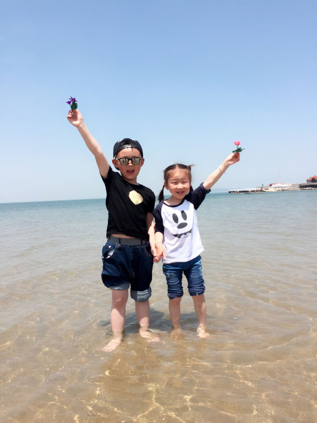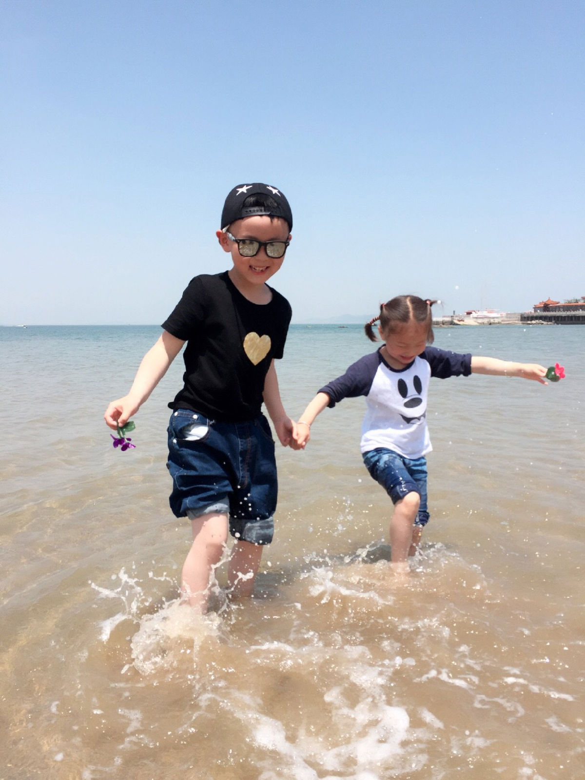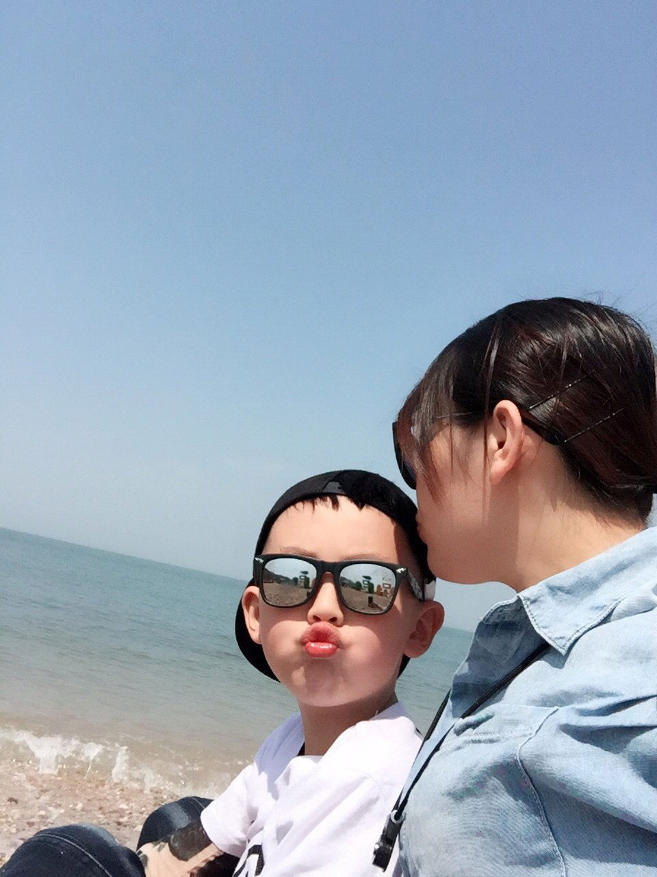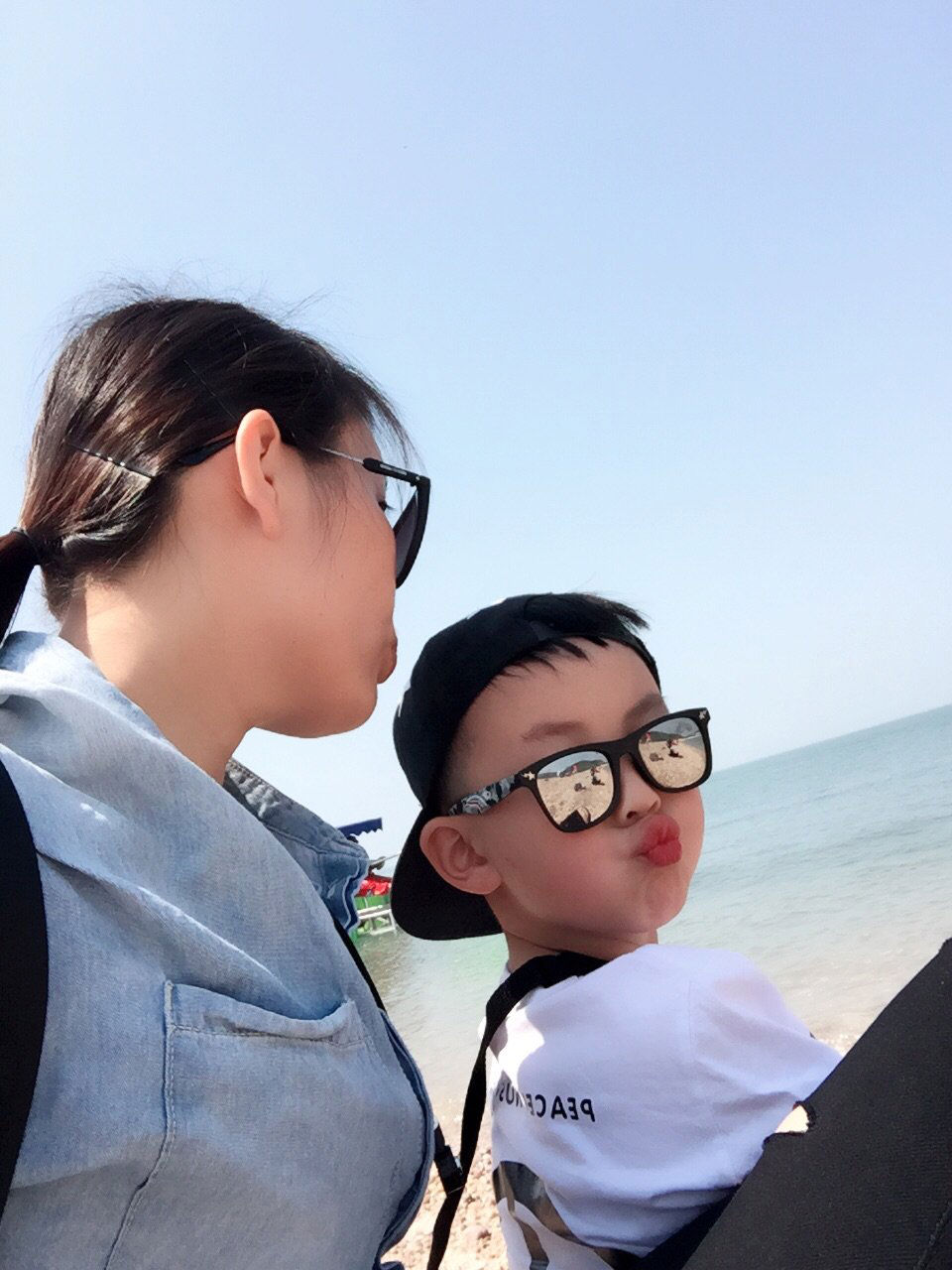 蓬萊海灘, 沙子不是很細(xì),但水質(zhì)很清,很適合孩子嬉笑打鬧。不知道是這幾天氣溫升高,還是蓬萊原本比長(zhǎng)島氣溫高,下海一點(diǎn)都不覺(jué)得冰冷。