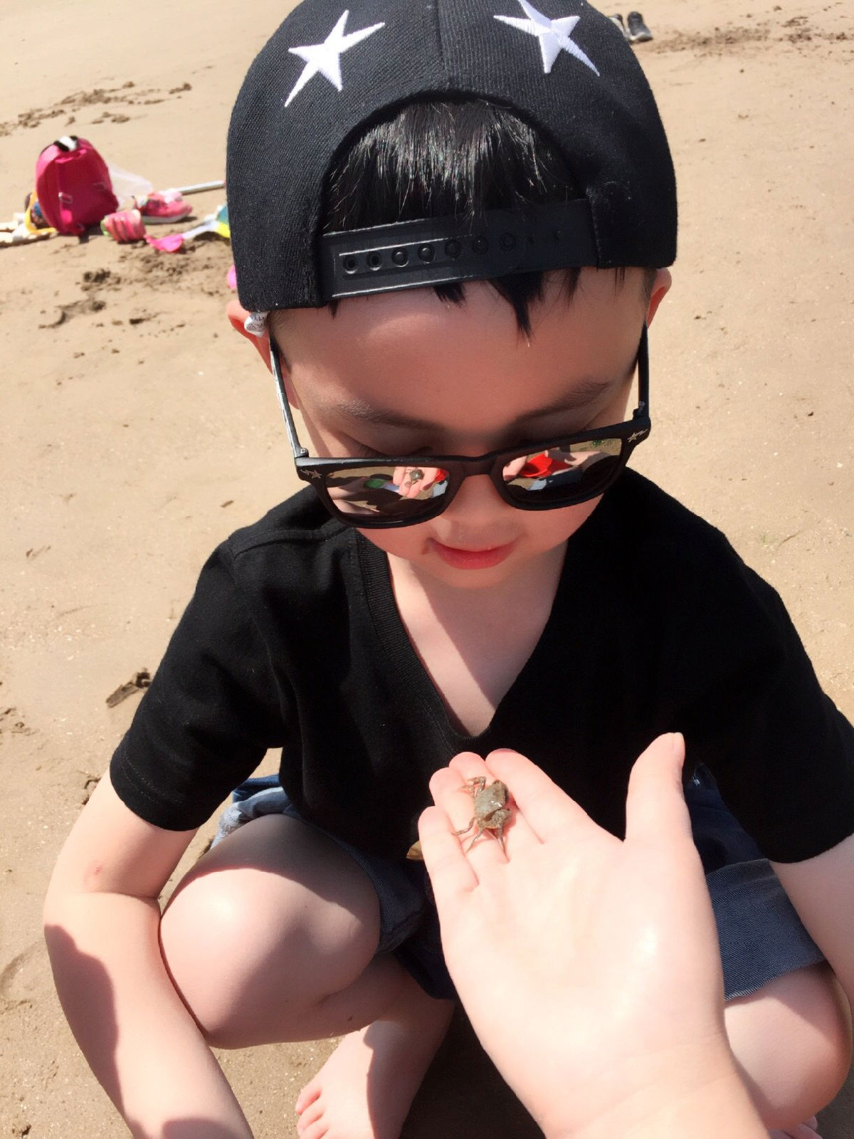 小螃蟹,回來(lái)后把它放生了