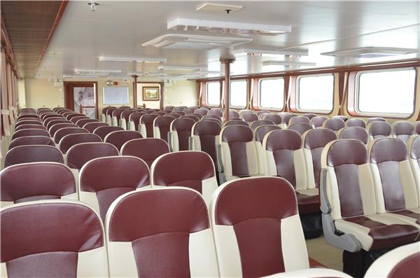 “尋仙12”長島旅游攻略號客船采用鋼鋁船體結(jié)構(gòu),總長59米、型寬9.5米、型深3.7米、主機(jī)功率2940千瓦、總噸782噸、凈噸391噸,可載包裝海鮮或貨物4噸。該船安裝了減搖裝置,設(shè)外龍骨,抗風(fēng)等級8級,從而減少了風(fēng)浪天氣船舶回?fù)u頻率,避免和減少了旅客暈船現(xiàn)象的發(fā)生,提高了通航率、船舶穩(wěn)定性和乘客舒適性;該航線客船首次采用艏側(cè)推對北五島港口頻繁靠離提供了安全保障和操作便利。