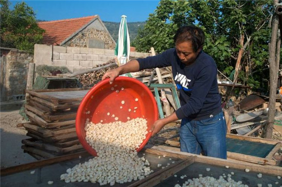 漁嫂每年加工的貝丁有一二百斤,她說南方人稱此為“瑤柱”,每頓飯必有煲湯的煮婦們非常青睞我們北方海島的這種特產(chǎn)。