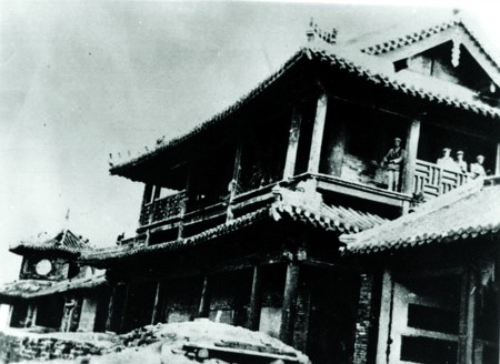 我軍指戰(zhàn)員在蓬萊閣上偵察敵情