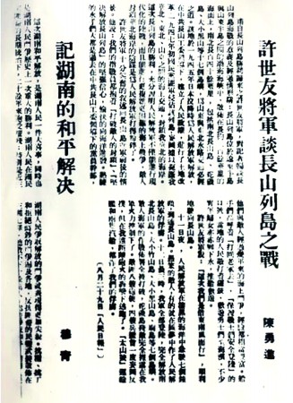 報(bào)紙上刊登的長(zhǎng)山島解放消息。
