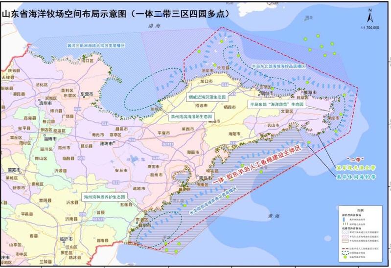根據(jù)水域自然稟賦、長島漁家樂漁業(yè)產(chǎn)業(yè)特點(diǎn)和資源環(huán)境承載力,山東確定打造“一體、兩帶、三區(qū)、四園、多點(diǎn)”的發(fā)展空間布局,同時(shí)劃定禁止發(fā)展區(qū)(詳見下圖)。