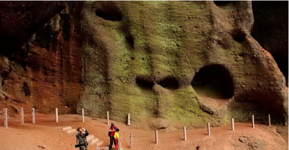 懸天峽: 進(jìn)入景區(qū),穿過(guò)古木參天的風(fēng)水林,長(zhǎng)島旅游攻略走過(guò)蒼苔斑駁的小石橋,見(jiàn)到橋邊客家人祭祀神靈的三神殿,在前行不遠(yuǎn)就進(jìn)入到了谷底。兩邊紅色的崖壁繼續(xù)向前在延伸,抬頭仰望,突兀的赤壁與蒼天相連在了一起,天如懸河,故名“懸天峽”。 懸天峽非常的擠逼,兩側(cè)崖壁一浪高過(guò)一浪,平日里拍PP俺一般不喜歡采用豎幅,因?yàn)闊o(wú)論是觀(guān)賞還是做桌面,都不好擺弄。但此時(shí)此刻不這樣拍都不能足以表達(dá)場(chǎng)面的壯觀(guān),因此,在懸天峽的照片幾乎都是豎版滴。 踏著竹路向下行,在一處倒懸的崖壁頂端,鬼斧神工般雕鑿出數(shù)百個(gè)丹霞洞穴,洞中套洞,洞中疊洞,大小不一,形態(tài)各異,令人目不暇接。這就是“天穹巖”,是流水侵蝕風(fēng)化剝蝕的典型代表,儼然是一座“洞穴博物館,丹霞大觀(guān)園”。 整個(gè)山谷里就咱們一撥人,本來(lái)大家都想扯著嗓門(mén)吼幾下,但看看這些稀松的崖壁,山東長(zhǎng)島若蘭說(shuō):別滴,萬(wàn)一大聲喊叫,回聲震蕩引來(lái)落石崩塌,那可是不得了!于是大家偃旗息鼓,靜靜的只管拍照。