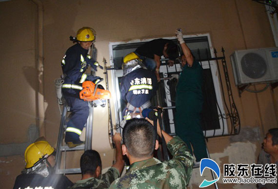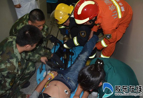 醉酒男子凌晨墜掛護欄 山東長島消防緊急救援(圖)