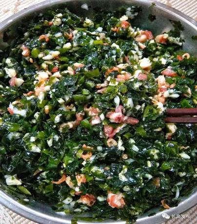 海菜包子,是島上人又一個拿手飯,用肉丁和蒜丁做配餡,倒入足量的油,蒸熟后尚未開鍋,鮮香味便撲面而來。咬一口稀溜滑潤,清鮮可口。