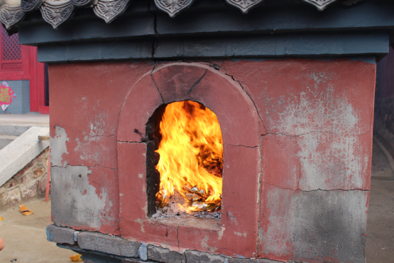 焚燒爐內(nèi)燃起的火苗預(yù)示著紅火的山東長島漁家樂好日子