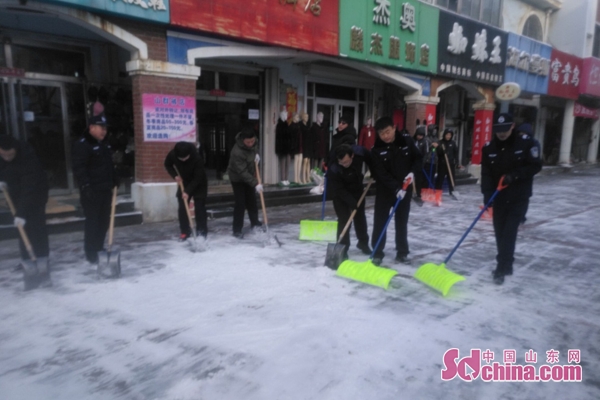 山東長(zhǎng)島縣綜合行政執(zhí)法局助民為民 義務(wù)掃雪保暢通