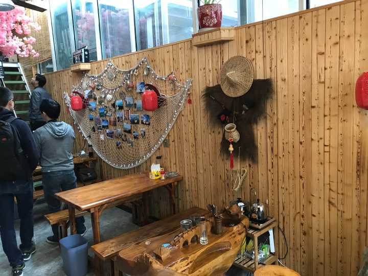 在房間的設(shè)計和裝飾上,都是孫長志一手操辦。記者在現(xiàn)場看到,每個房間的裝飾都不同,但都圍繞漁家主題,打撈螃蟹的“迷魂陣”漁網(wǎng)做成了燈罩,掛在墻上的螃蟹殼長島漁家樂攻略,老船木制作的家具,充滿質(zhì)樸懷舊氣息的大紅花粗布,船上的纜繩,量器升斗,老鐘表,百年方燈……在海銘居漁家樂,這些老物件格外引人注意,這都是孫長志特意四處搜集而來。
