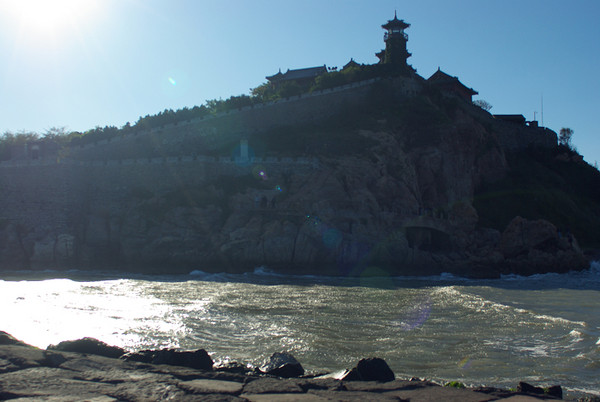 到了下午,日暈充足,這里就是蓬萊閣了,門票也太貴了。100多大洋一個人,我們同行的三個人,毅然放棄了進去的決定,卻忽然發(fā)現(xiàn)蓬萊閣的旁邊有一個炮臺的礁岸~走著~~~