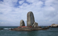 遠(yuǎn)遠(yuǎn)望去有一個(gè)圓盤狀的大礁石,托著一高一低的兩塊碑形海蝕柱。整個(gè)礁石象一艘大船兩塊巨石象兩面鼓起的雙帆,似乎正在乘風(fēng)破浪前進(jìn)。長島旅游這是平潭最著名的自然景觀——石牌洋。