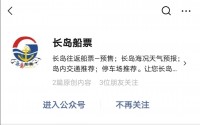 作者:朝夕憶可否 發(fā)表時間:2021-01-10 10:25上島攻略1.關注公眾號“長島船票”2.點開底部菜單的“蓬萊到長島”3.每天早上6點半刷新當天船票,請關注去西三鄉(xiāng),里面有大黑山。國慶期間是8:00,11:30,15:00三個航班,單程60元,3元保險