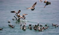 偶貓來到山東長島第一個清晨,乘著船漂到萬鳥島觀海鳥了,靠近小島時,便看到大量的海鳥在天空盤旋、飛翔,還可以看到海面捕食的海鷗,鳥鳴聲也是不絕于耳,好壯觀啊。去海邊流浪:長