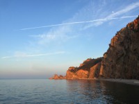 我從蓬萊港乘船到長島,在南長山島九丈崖景區(qū)站在高崖上俯瞰一個靜悄悄的當?shù)貪O民叫鷗翅灣的美麗海灣,當時游客非常少,平時我難得一見大海,癡忽忽地望著腳下的海灣,遐想萬千,微咸