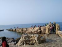 長(zhǎng)島旅游月牙灣、九丈崖 7點(diǎn)10分吃飯,40分鐘后來到碼頭,人不多,車也不多,我們上了船才8點(diǎn),女兒發(fā)現(xiàn)船票是9點(diǎn)20開,我心想,啊呀,買票時(shí)也沒有問個(gè)時(shí)間,自認(rèn)為是8點(diǎn)20分