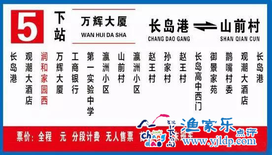 乘車站點:出長島港大門往南30米處(請您一定看好南北方向,小編上次去大城市坐公交,越坐越遠……淚……)