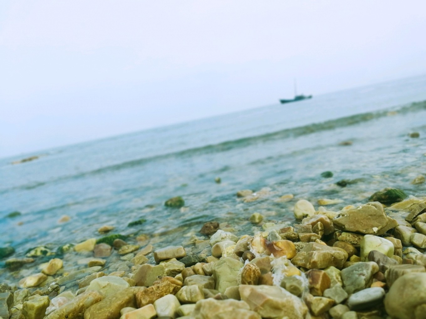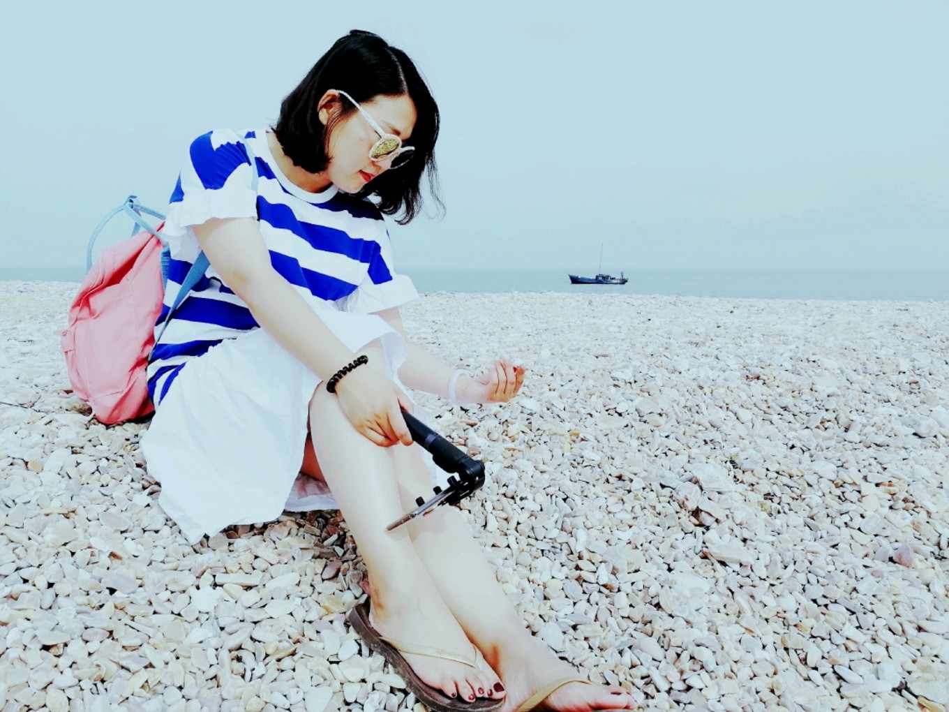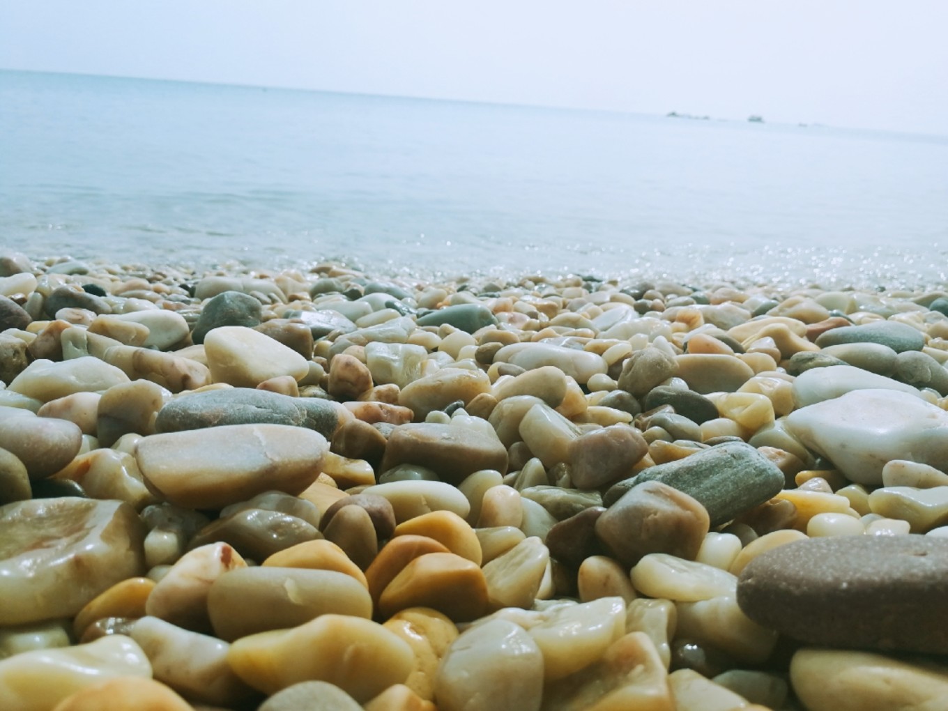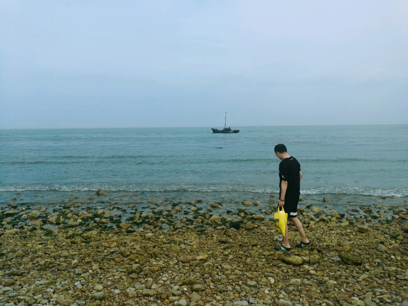 和老公在石頭灘上堆石頭竟然堆了一個小時,感覺太喪志了,于是決定起身徒步轉(zhuǎn)島游