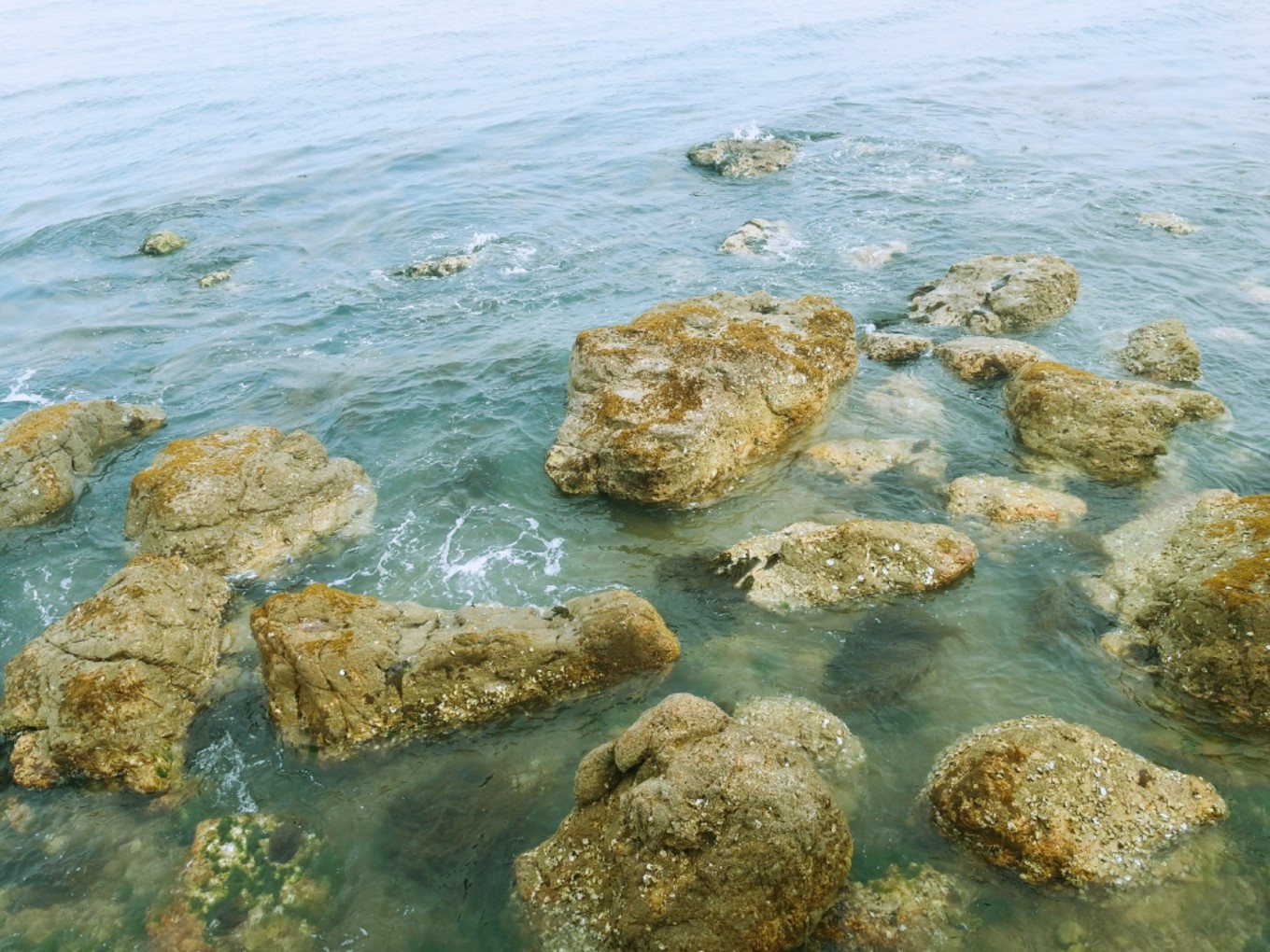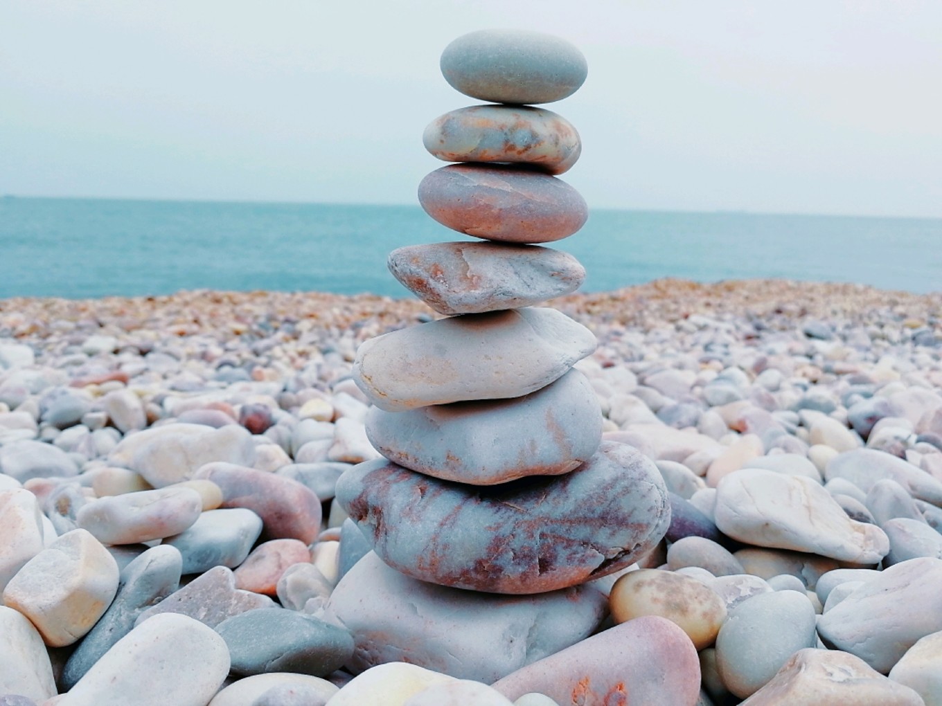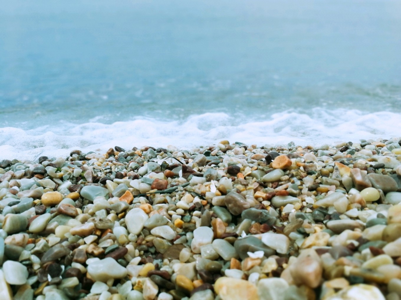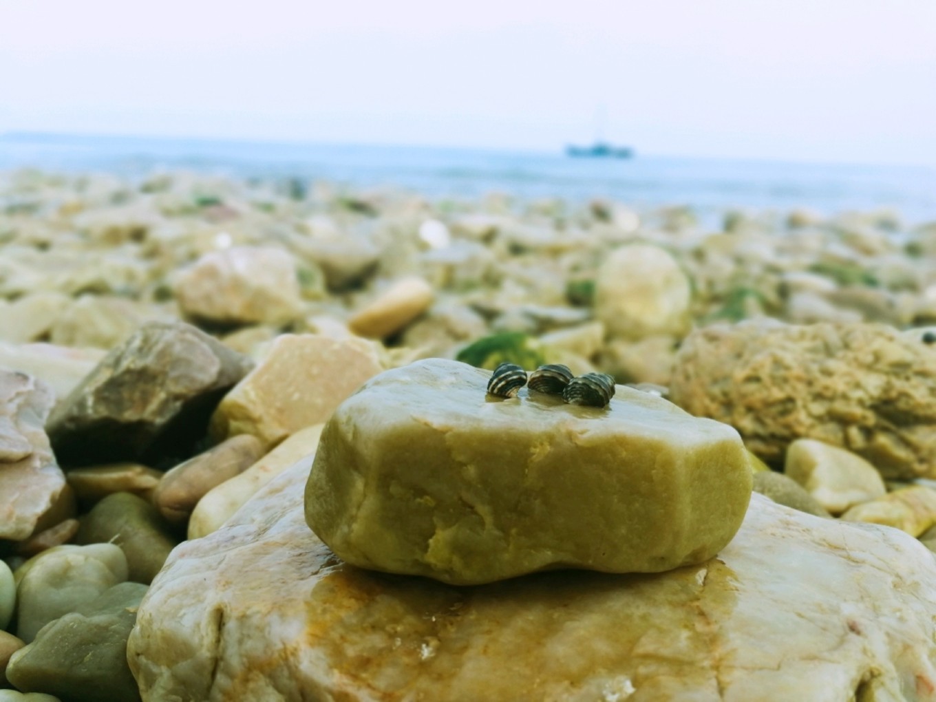 和老公在石頭灘上堆石頭竟然堆了一個小時,感覺太喪志了,于是決定起身徒步轉(zhuǎn)島游