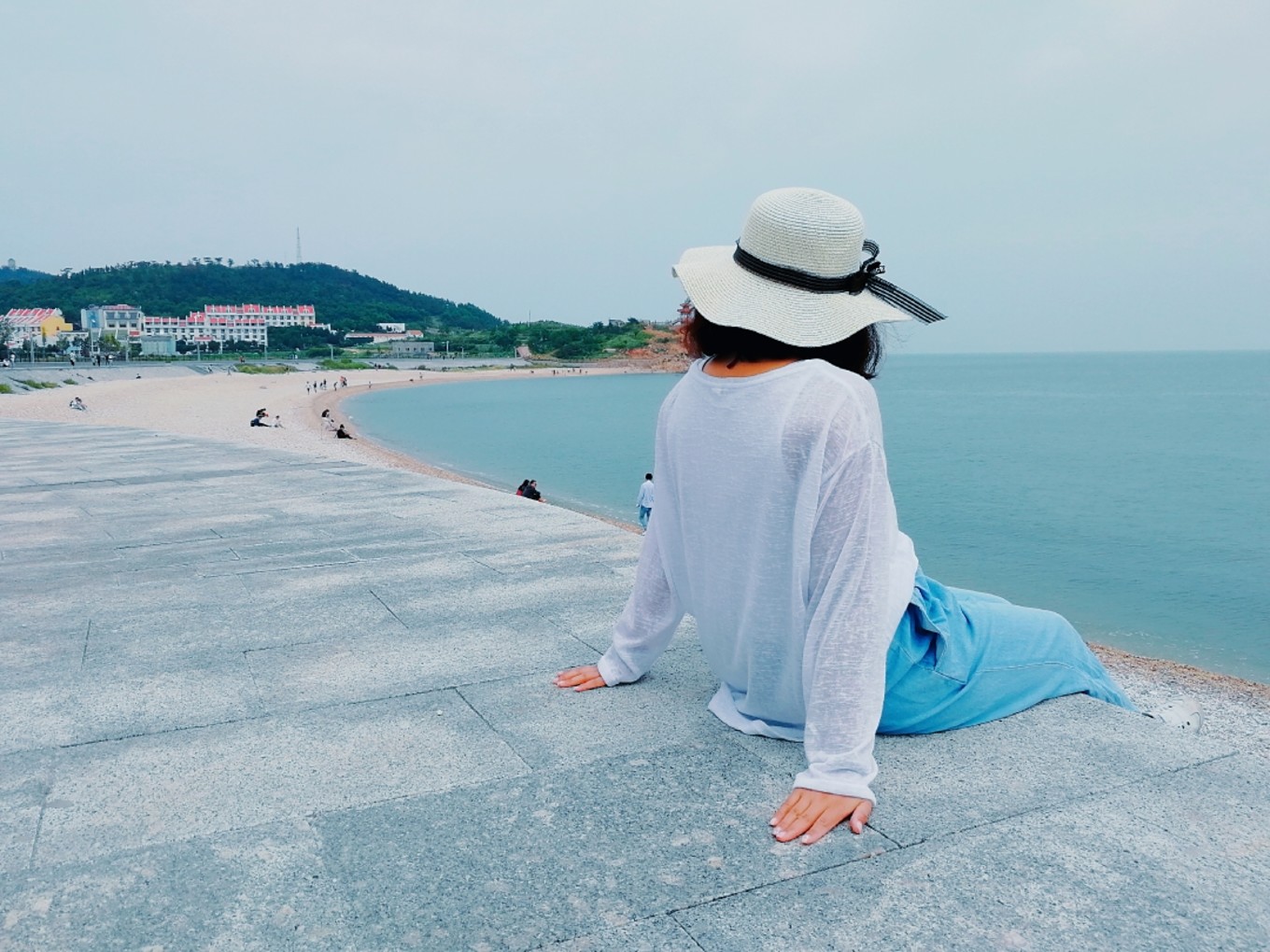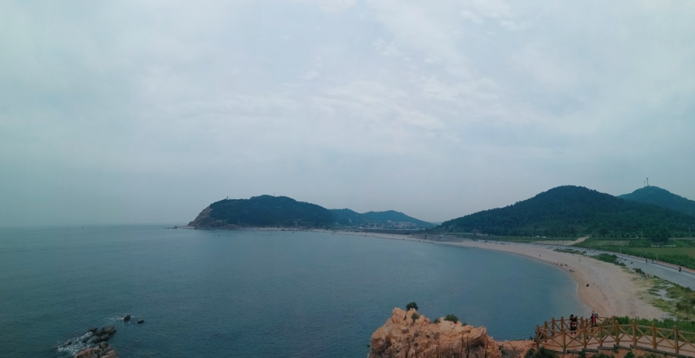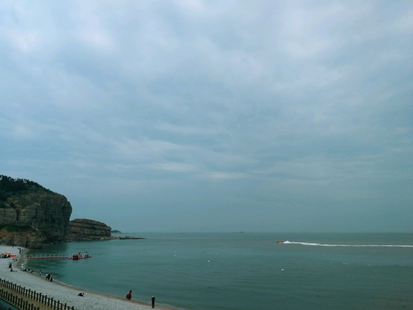 走上369級臺階,可以眺望黃渤海交界,果然兩個海水無法相融,中間一條分界線