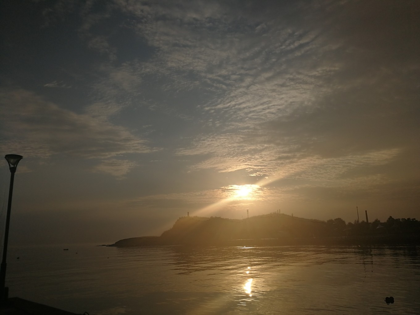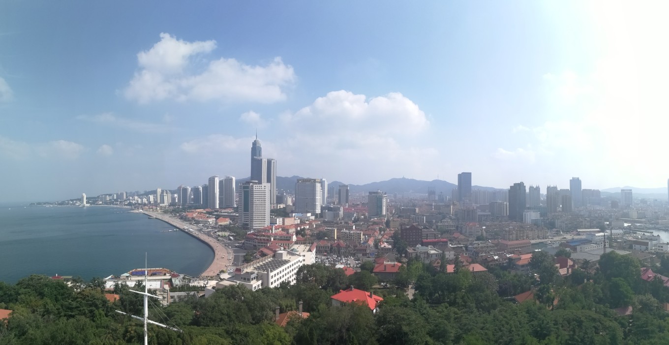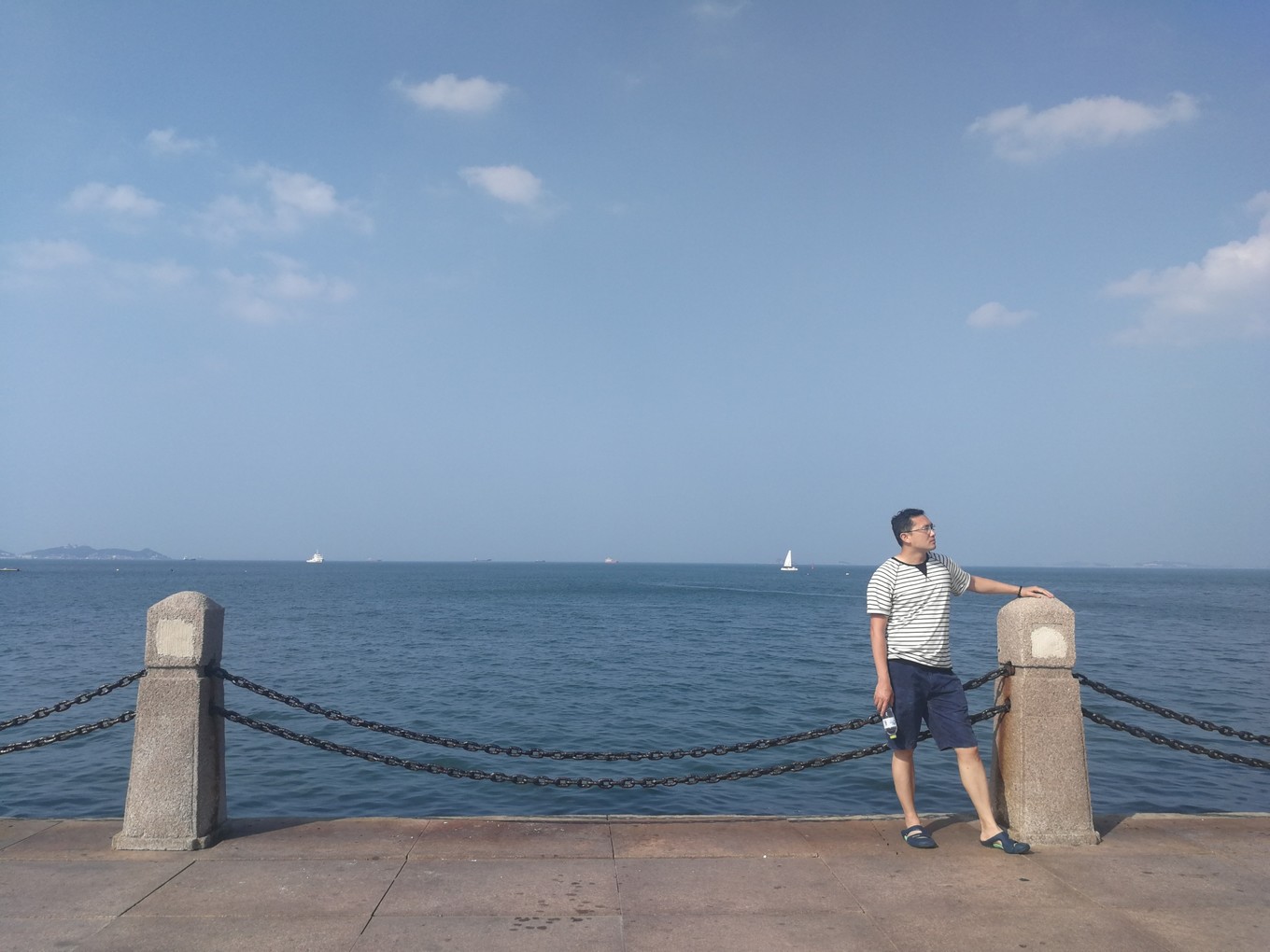 走上369級臺階,可以眺望黃渤海交界,果然兩個海水無法相融,中間一條分界線