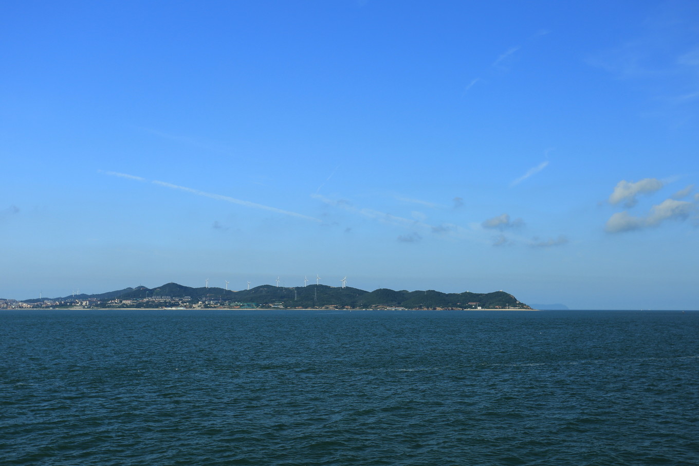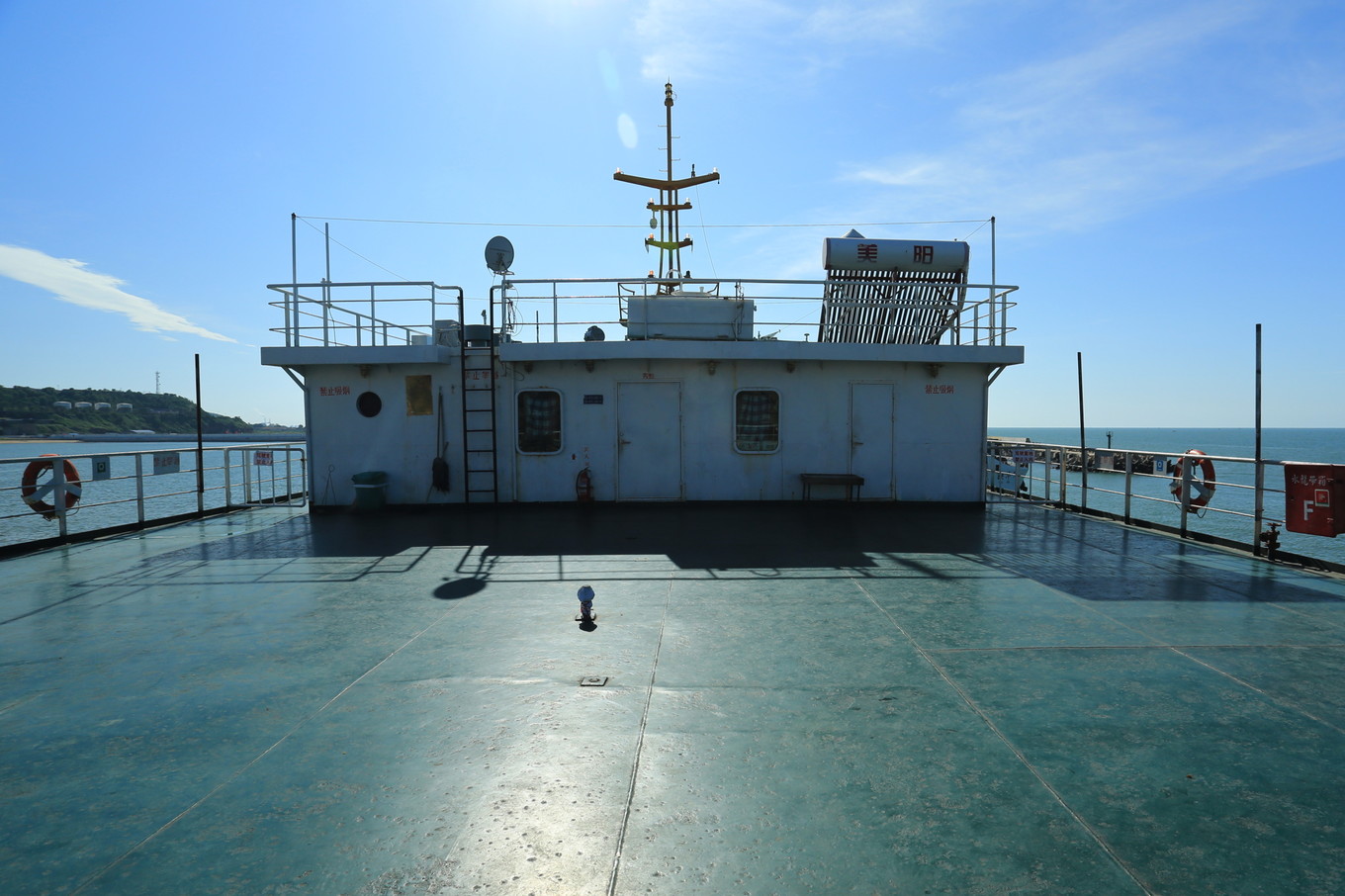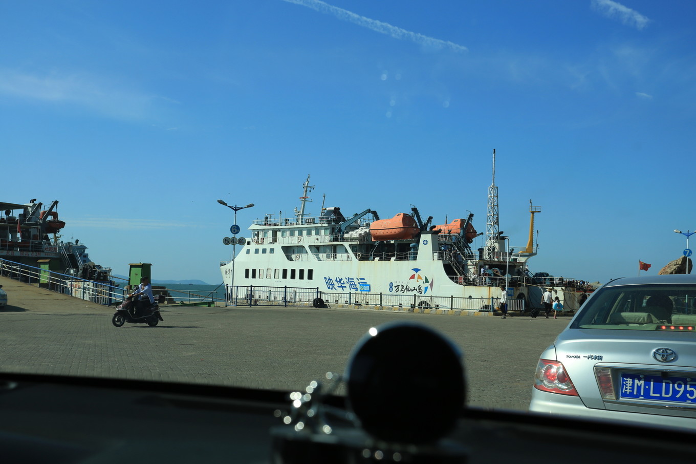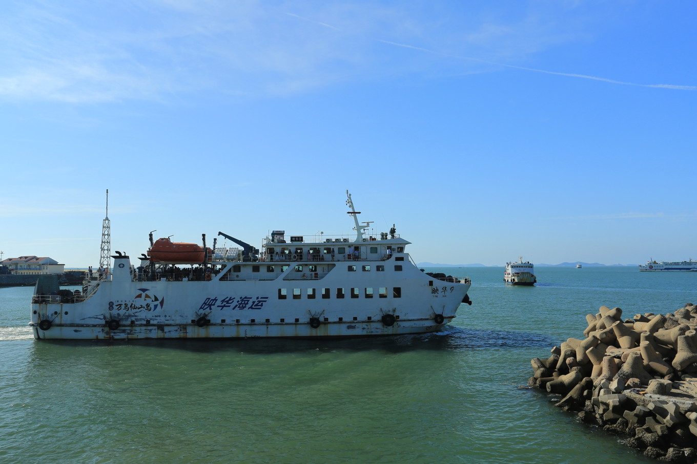 沒(méi)有記錄開(kāi)船的時(shí)間,大概是14:00左右開(kāi)的船,似乎比船票的時(shí)間晚了一二十分鐘吧,已經(jīng)離開(kāi)了蓬萊,遠(yuǎn)處是碼頭邊的田橫山