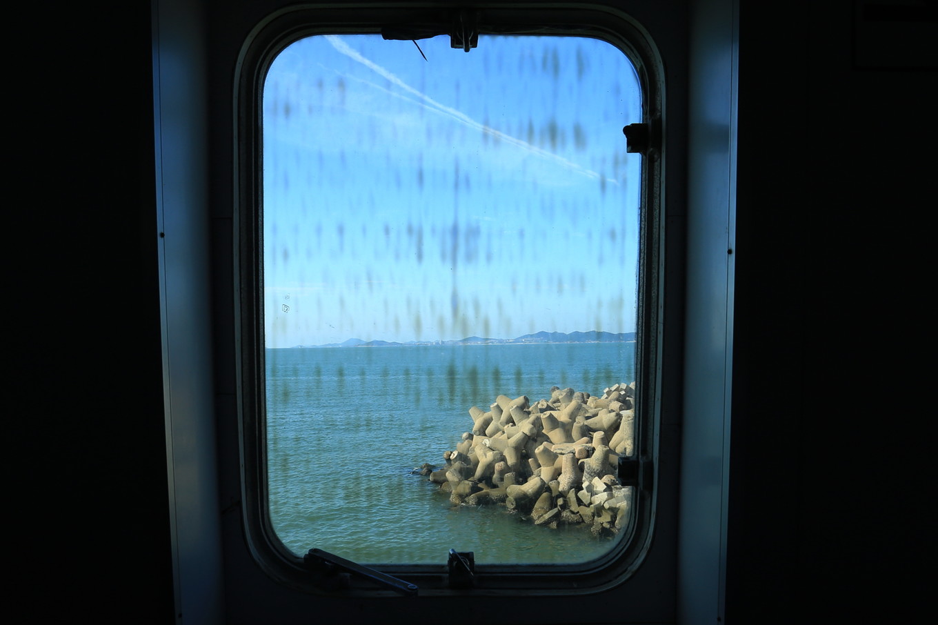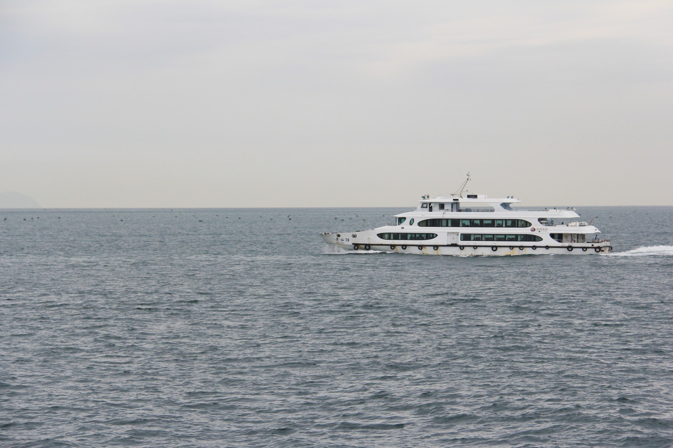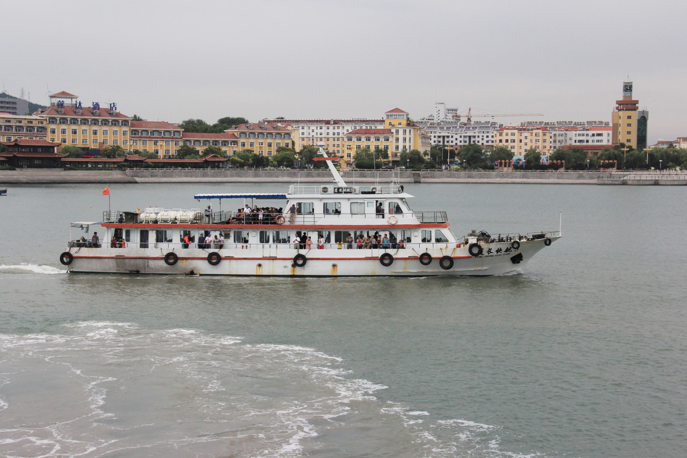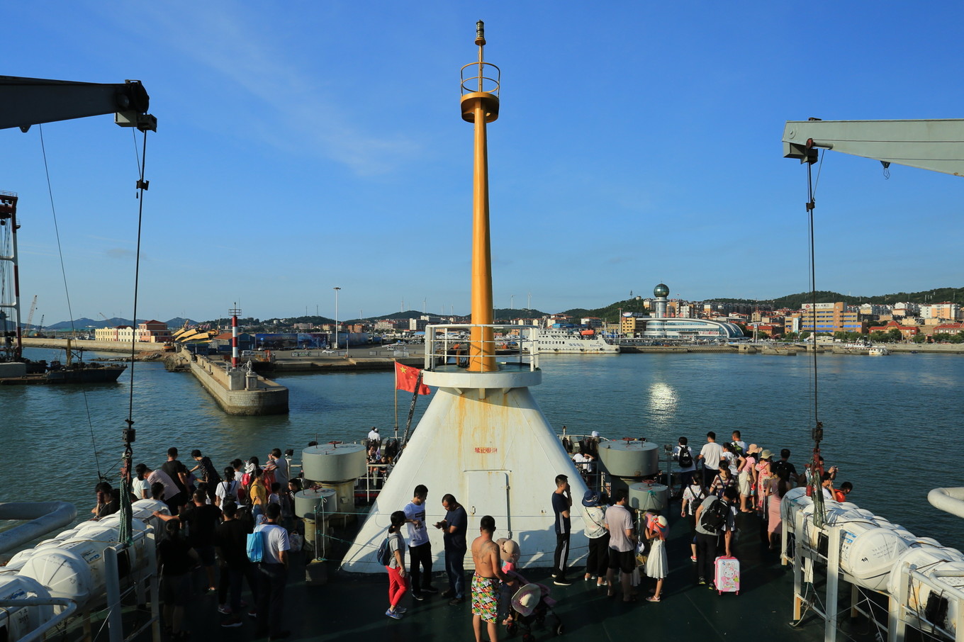 沒(méi)有記錄開(kāi)船的時(shí)間,大概是14:00左右開(kāi)的船,似乎比船票的時(shí)間晚了一二十分鐘吧,已經(jīng)離開(kāi)了蓬萊,遠(yuǎn)處是碼頭邊的田橫山
