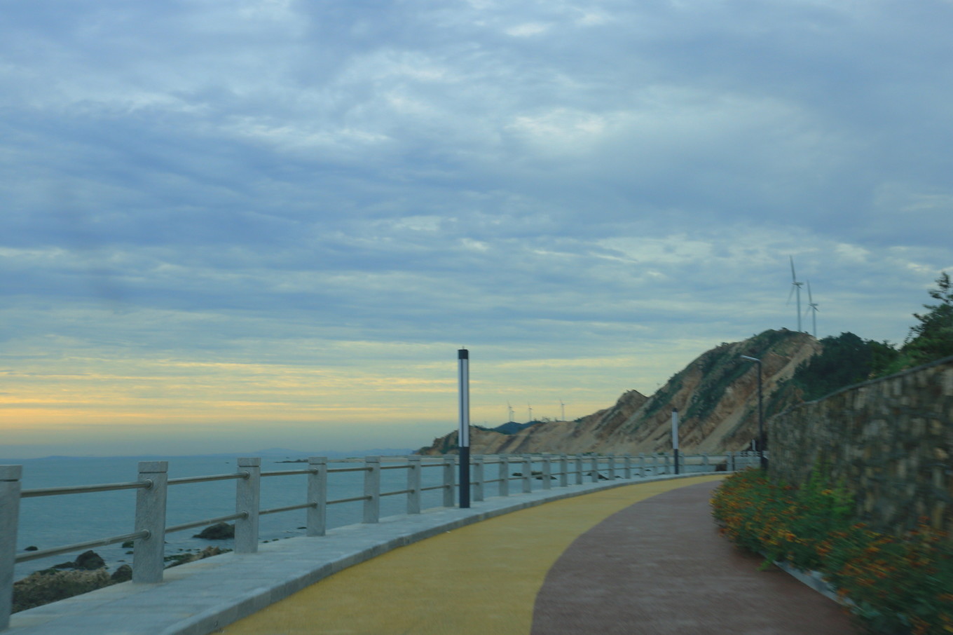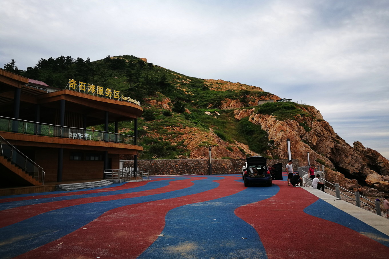 從山頂向東下山就是奇石灘,這里也有一部分早起來(lái)看日出的游客,奇石灘是環(huán)島棧道的最北端,服務(wù)區(qū)才建好還未開(kāi)始使用
