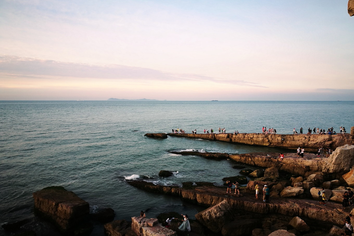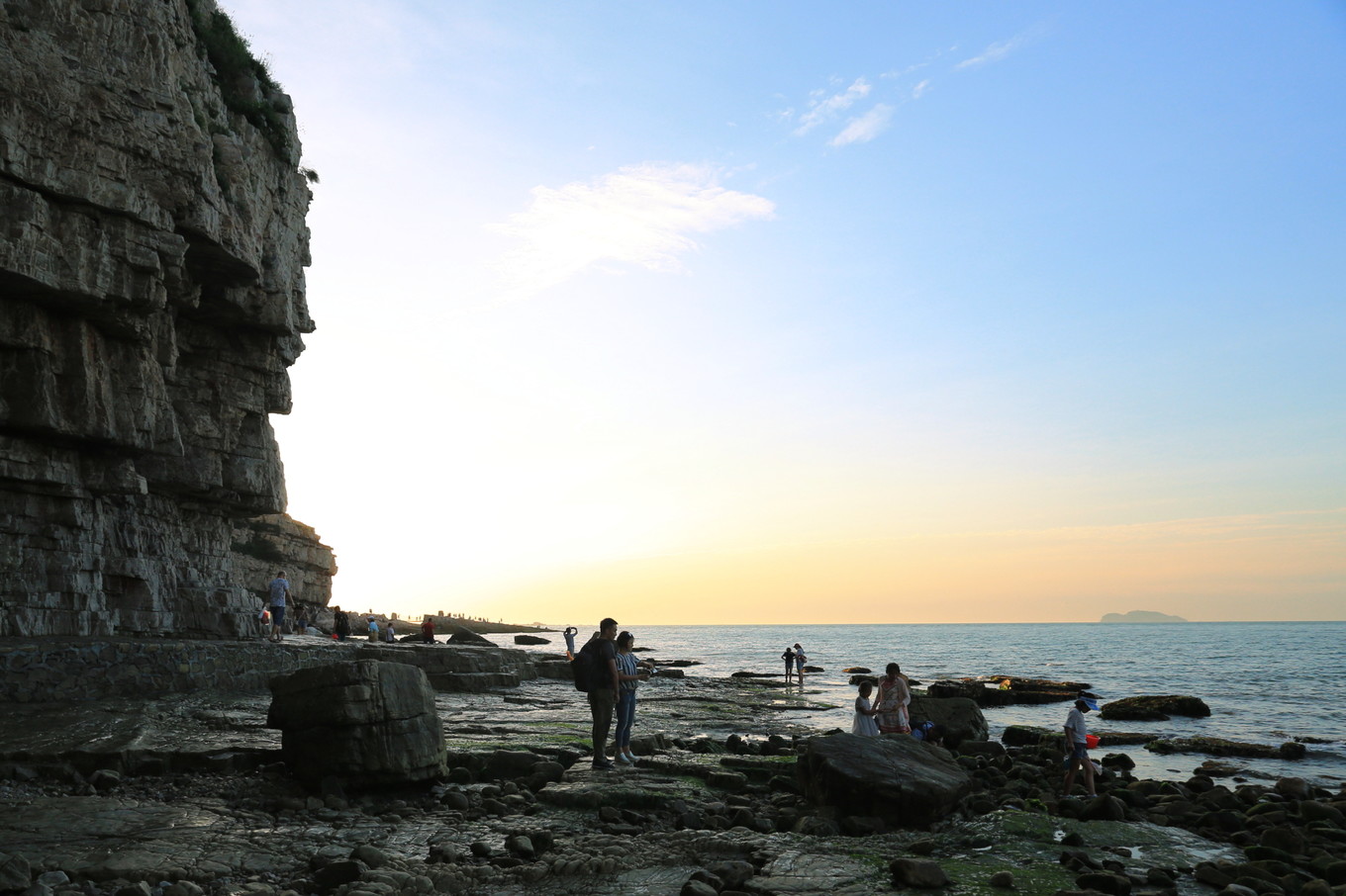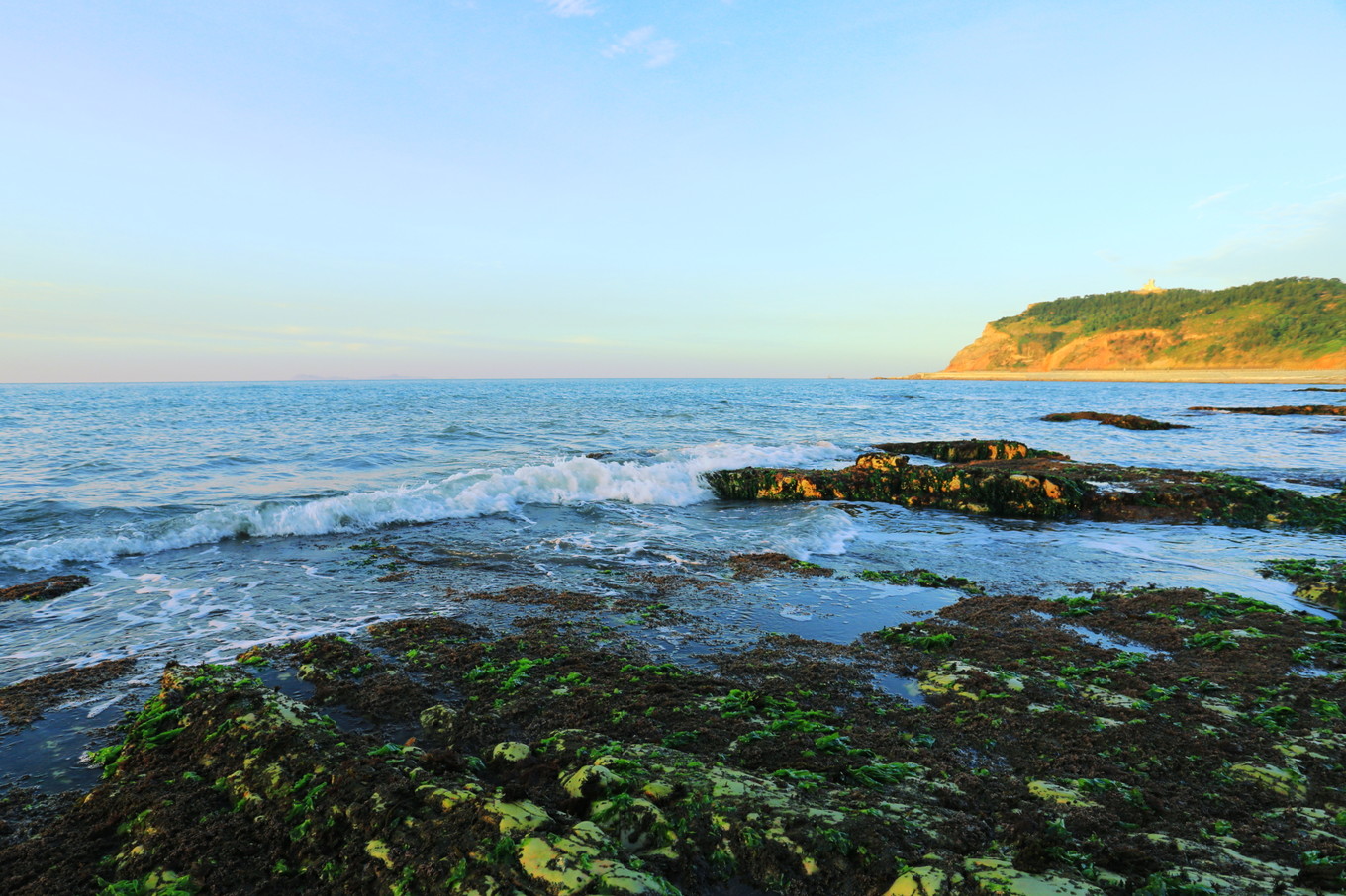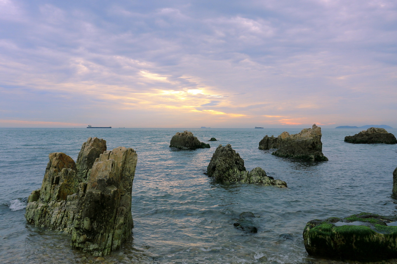 沒(méi)有看到日出,從山上向東下到海邊的奇石灘,這里看日出也是不錯(cuò)的地方,清晨的人不多,海灘邊散落著大小不一的礁石,海浪不算很大,坐在岸邊可以靜靜的傾聽(tīng)到海浪沖刷在礁石上的嘩嘩聲