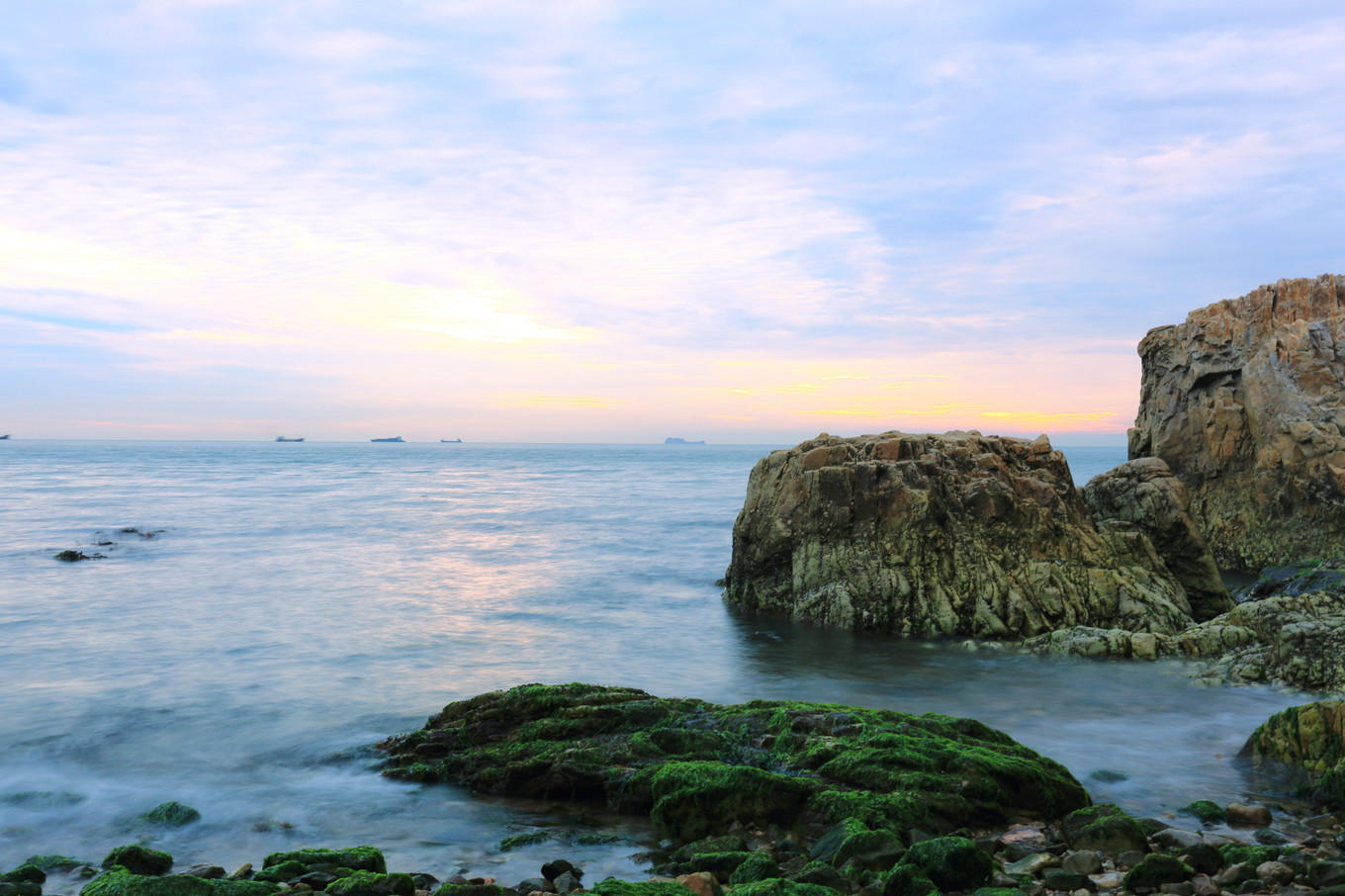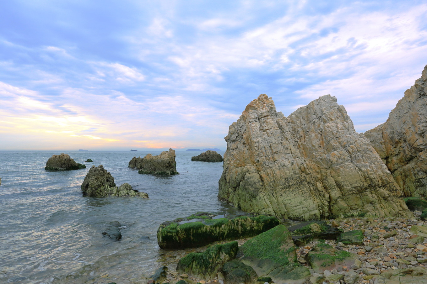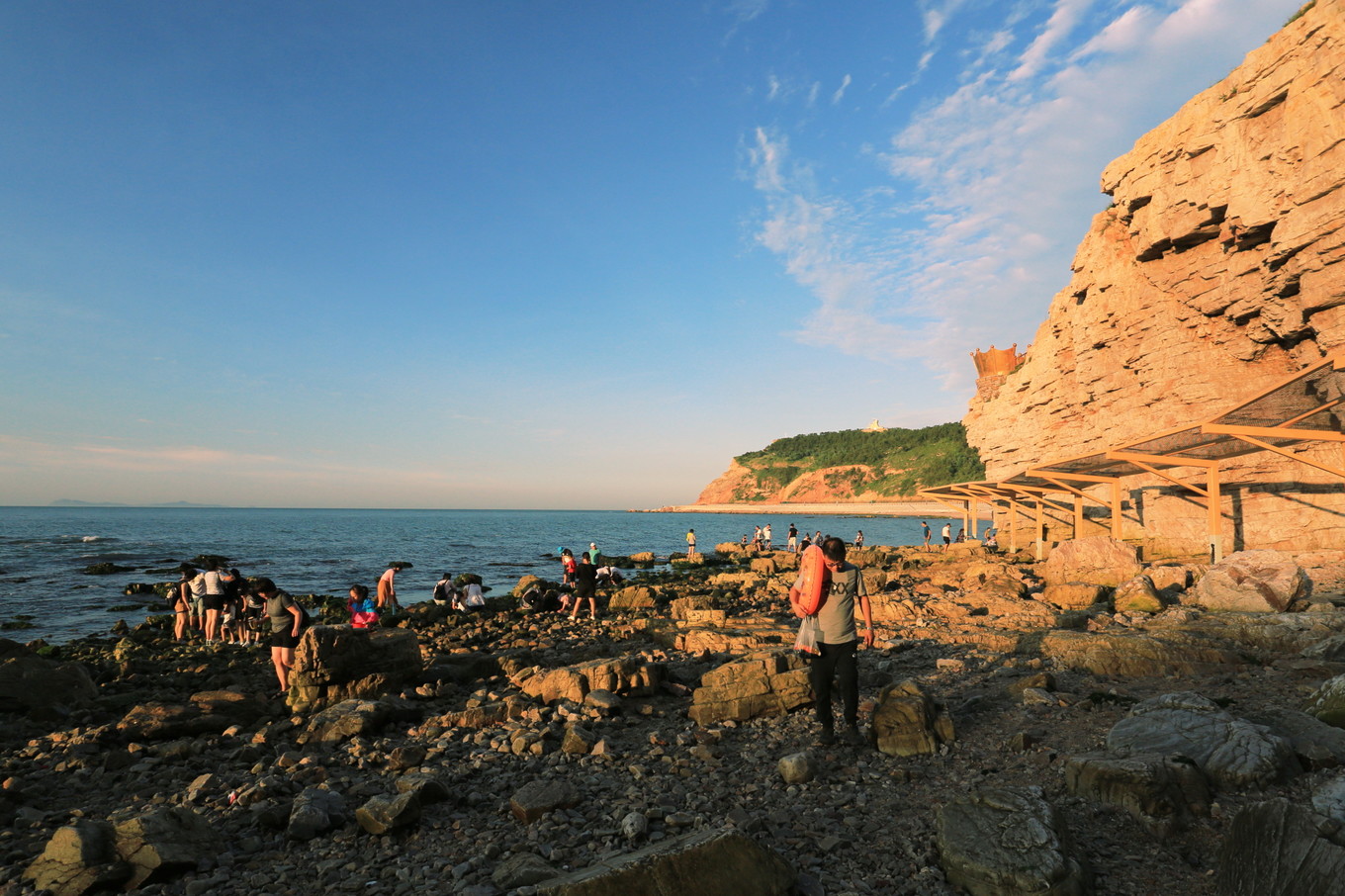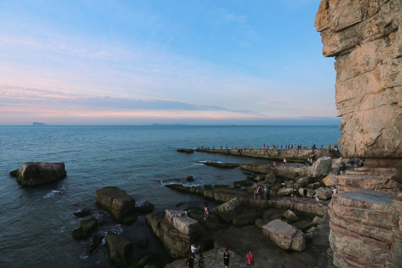 沒(méi)有看到日出,從山上向東下到海邊的奇石灘,這里看日出也是不錯(cuò)的地方,清晨的人不多,海灘邊散落著大小不一的礁石,海浪不算很大,坐在岸邊可以靜靜的傾聽(tīng)到海浪沖刷在礁石上的嘩嘩聲