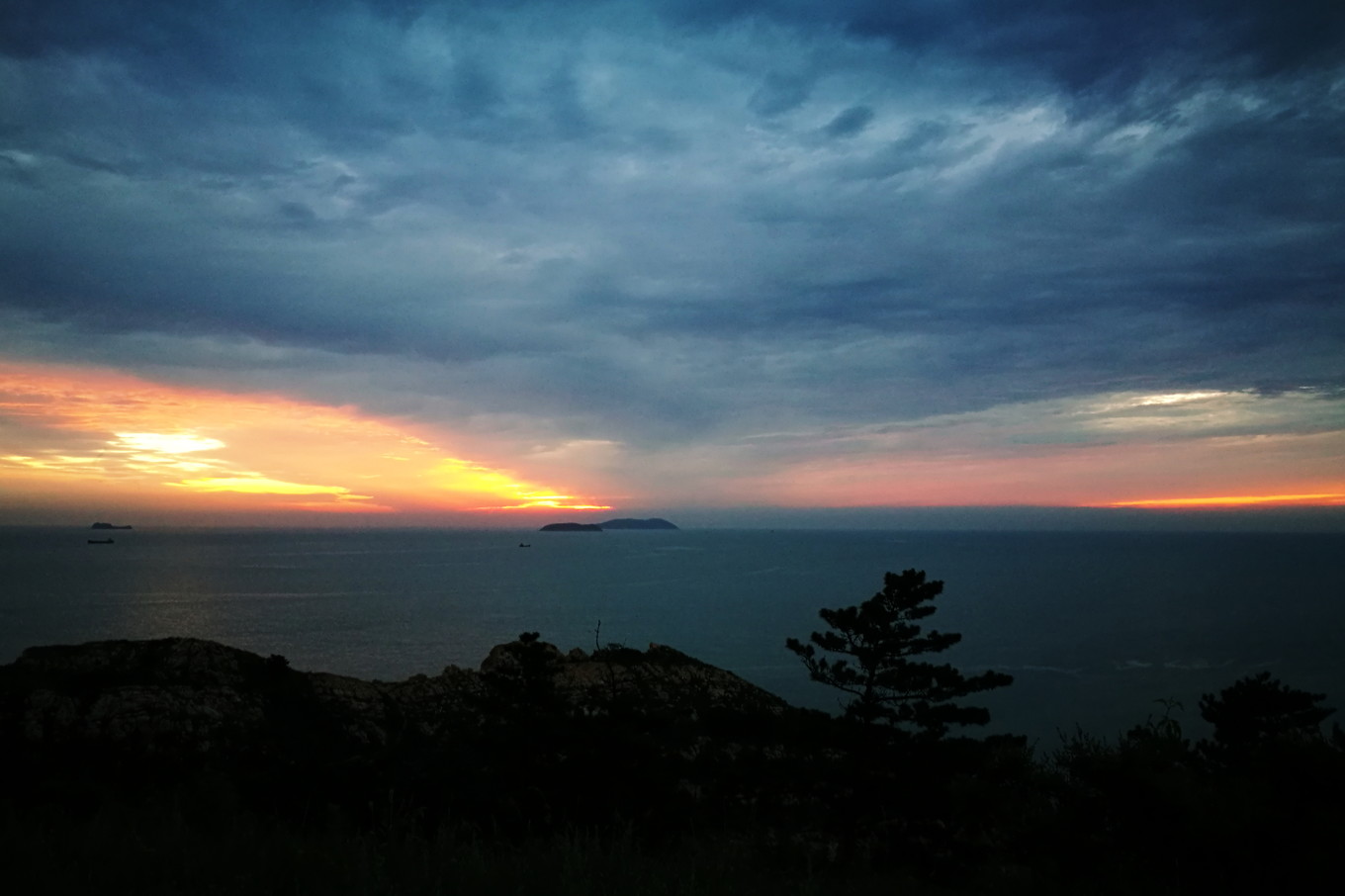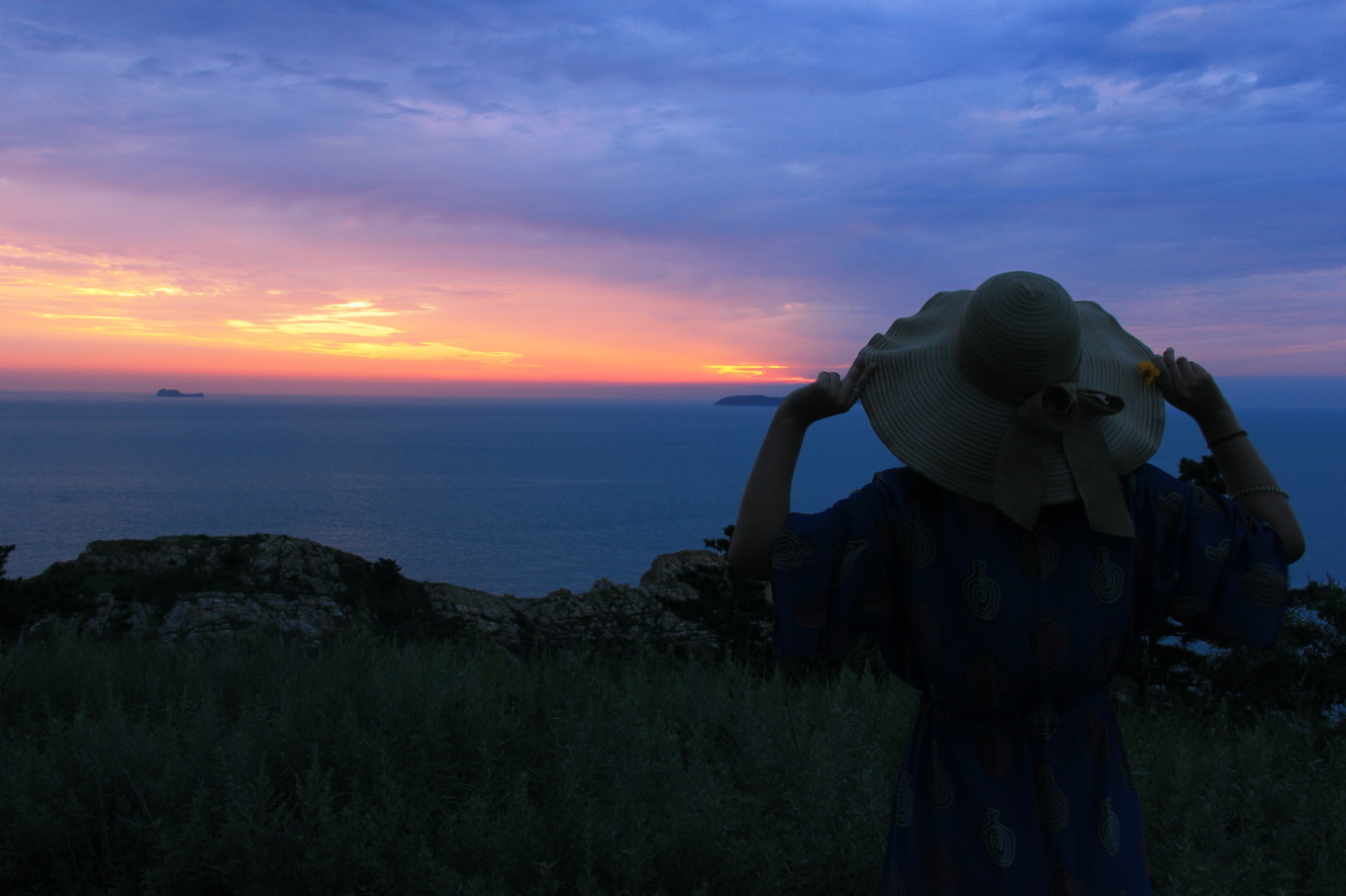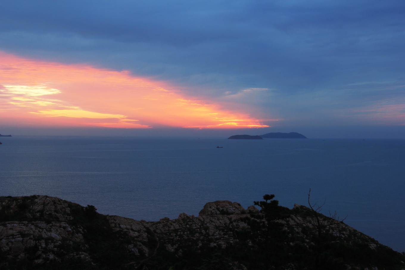 早晨一直起的都很晚,這次下決心去看海上日出,一早就又上了羊鼻子山,哈哈,運(yùn)氣不好,還是沒(méi)有看到,天上有云層,時(shí)厚時(shí)薄,只能算是看到朝霞吧