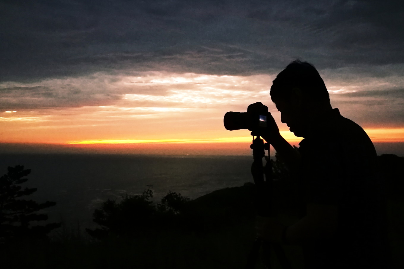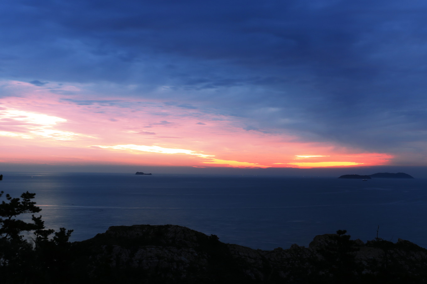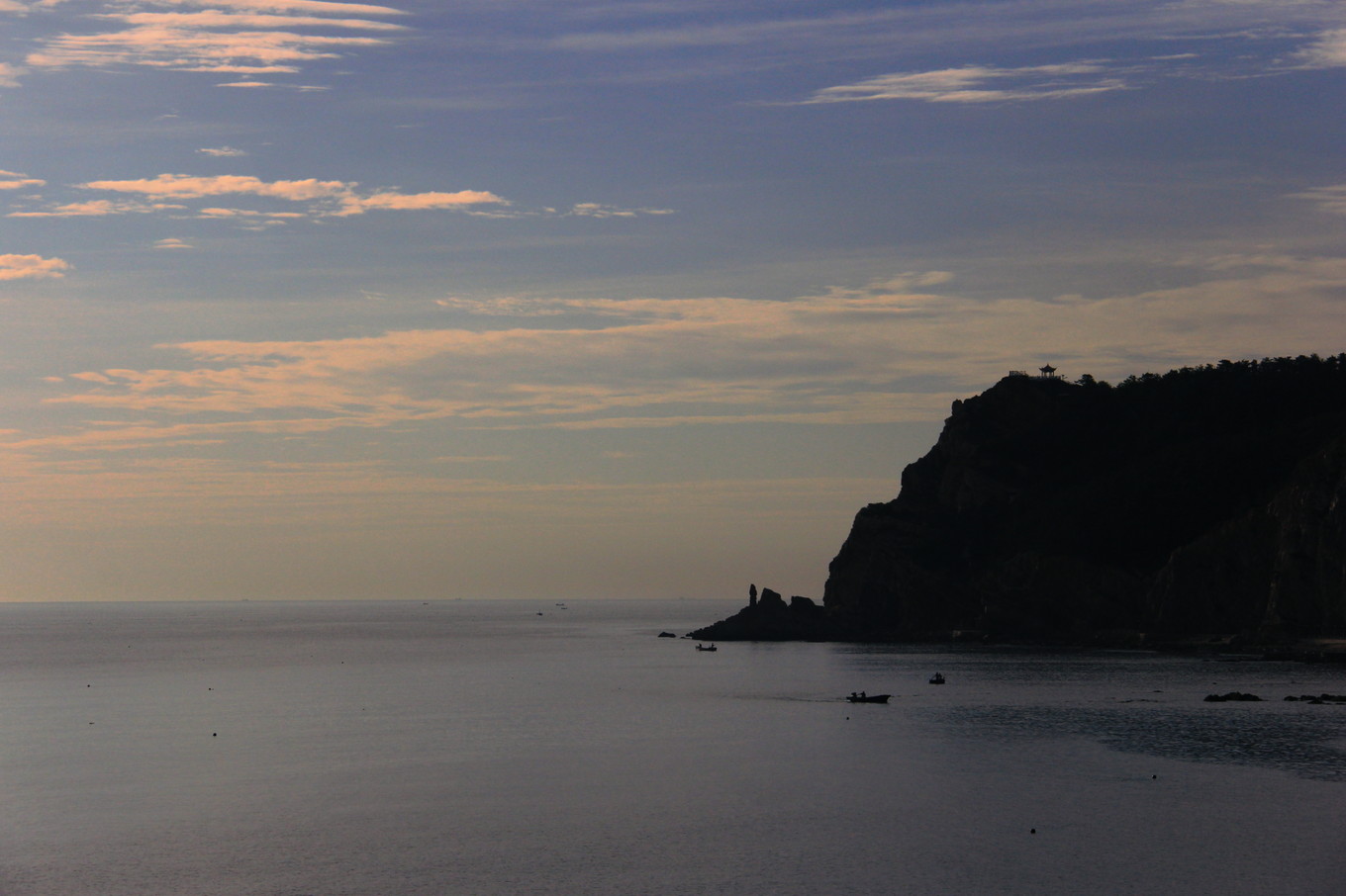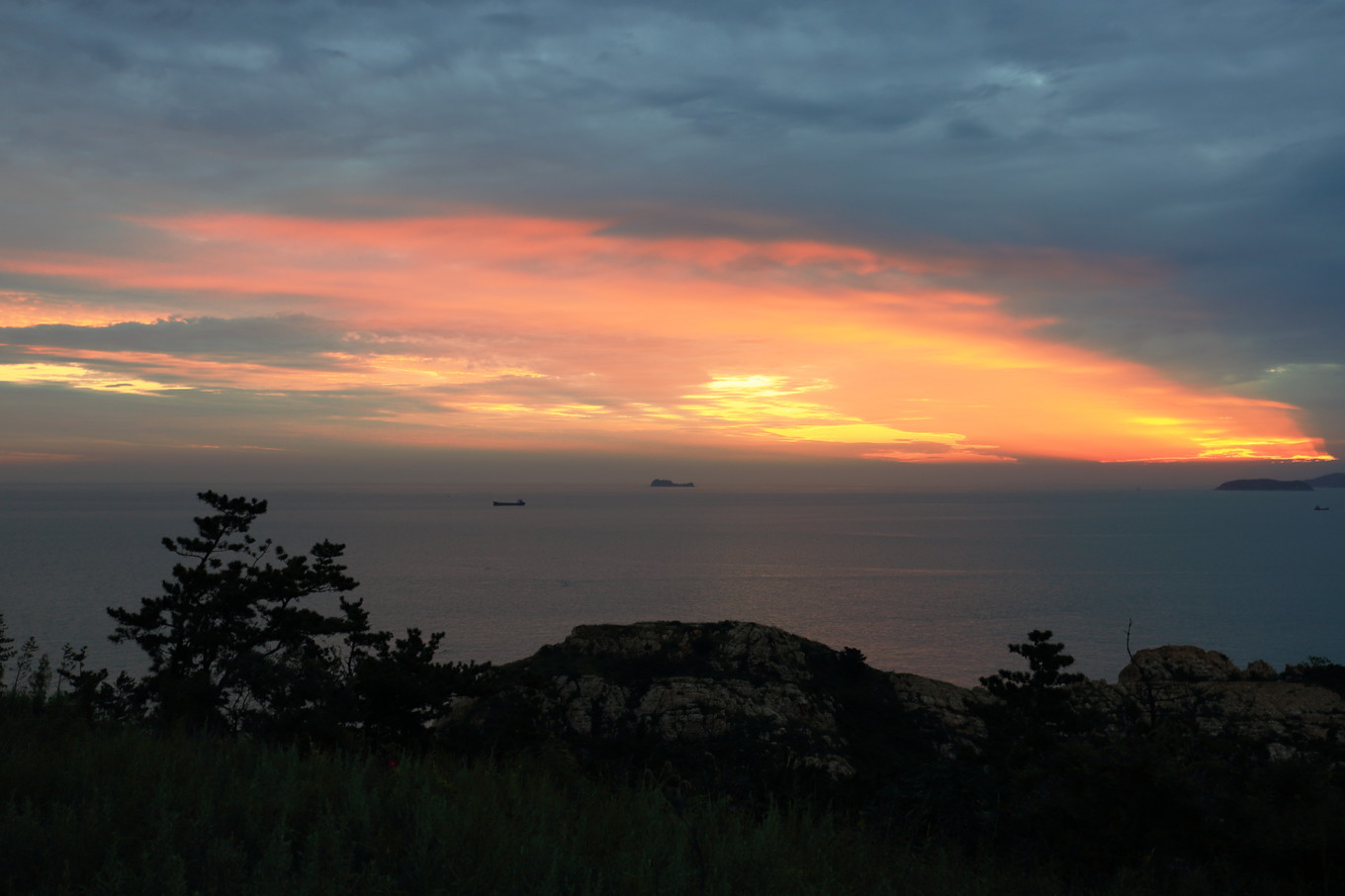 早晨一直起的都很晚,這次下決心去看海上日出,一早就又上了羊鼻子山,哈哈,運(yùn)氣不好,還是沒(méi)有看到,天上有云層,時(shí)厚時(shí)薄,只能算是看到朝霞吧