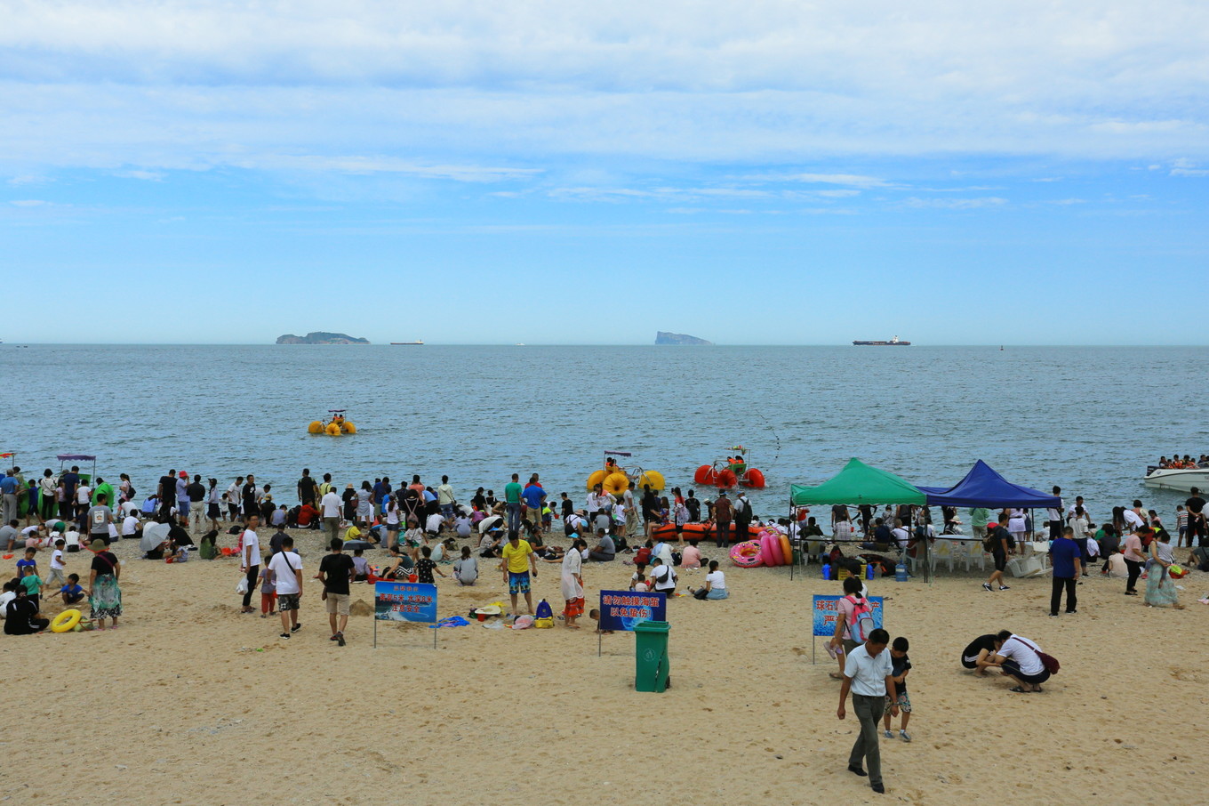 月牙灣東側(cè)的海灘,游客大部分都聚集在月牙灣海灘的入口處