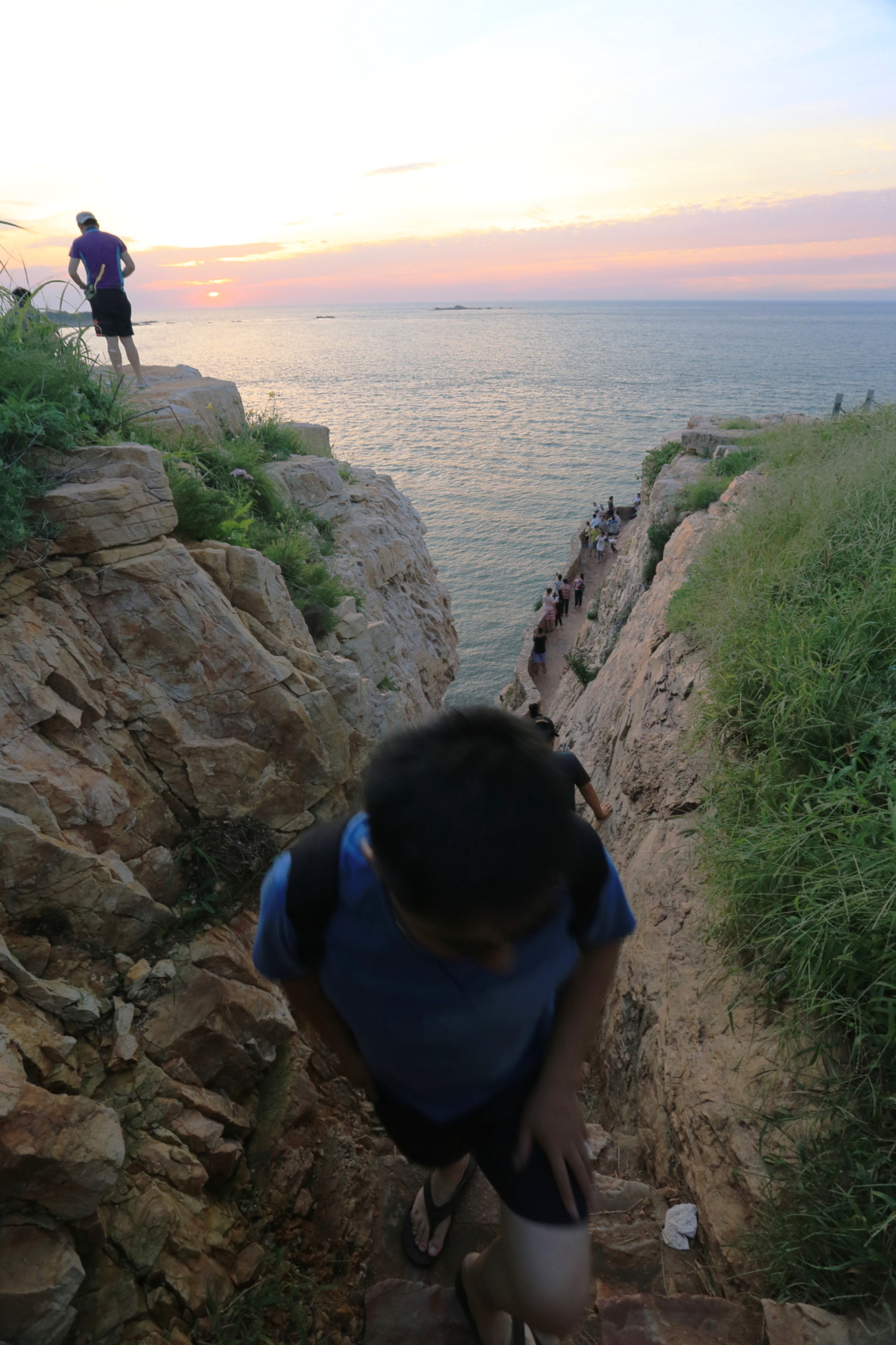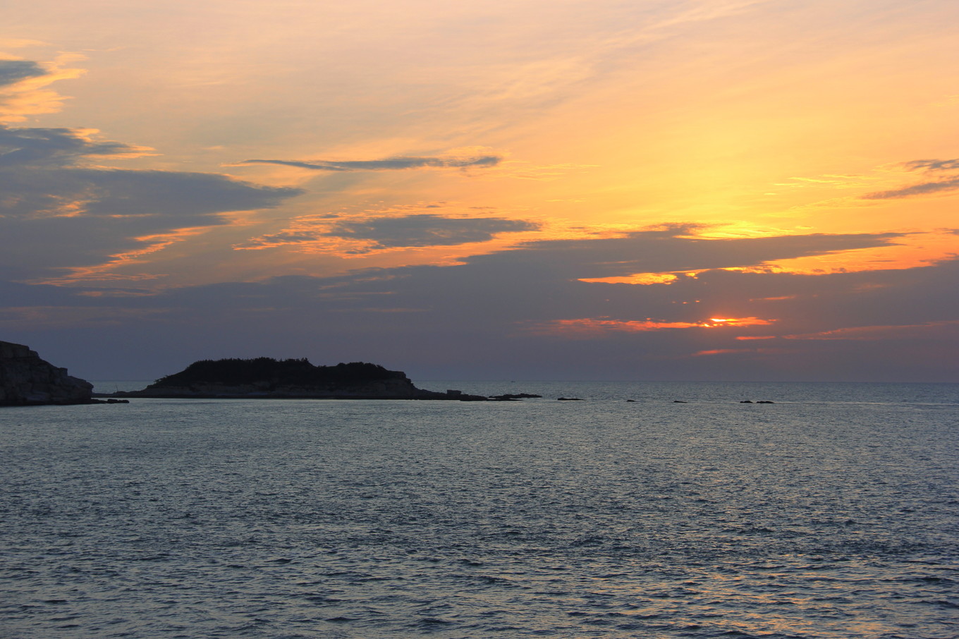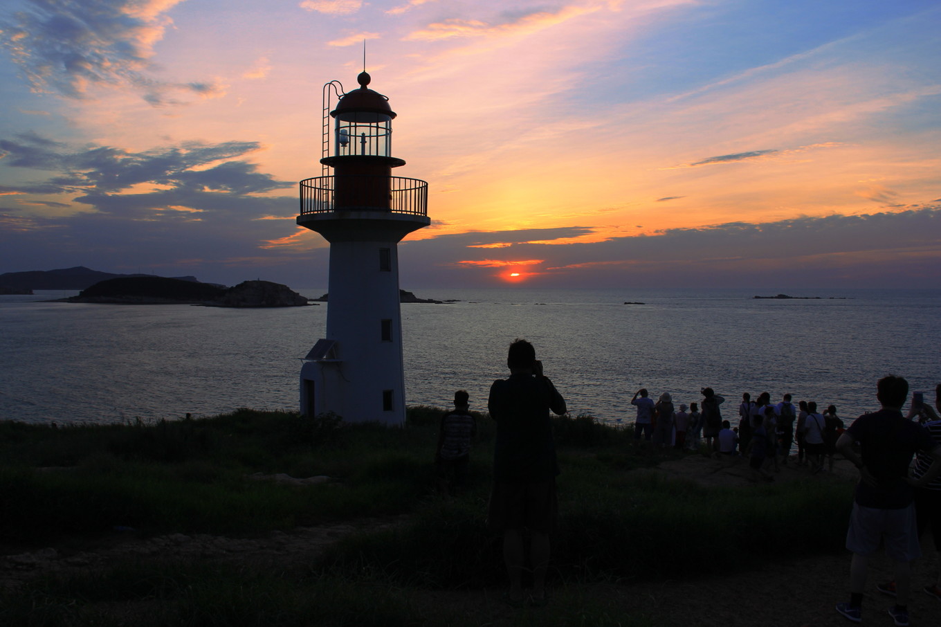 第一天等到我們想看日落的時(shí)候,去九丈崖已經(jīng)來(lái)不及了,只好開(kāi)著車(chē)向海邊去,沒(méi)想到運(yùn)氣的是走到了釣魚(yú)島碼頭,這大概也是看日落的好地方之一吧。太陽(yáng)落下處的小島就是釣魚(yú)島。