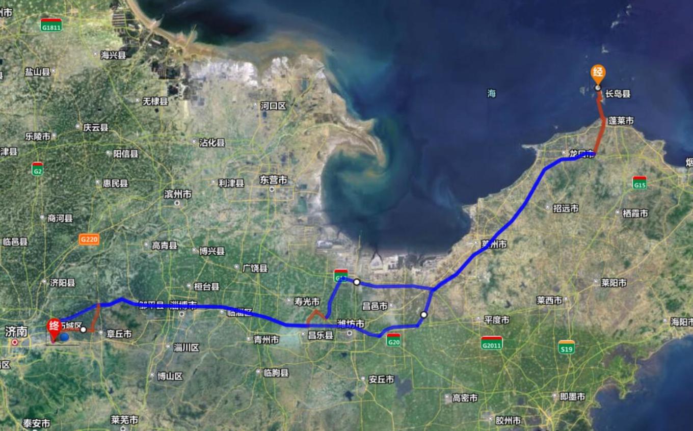 濟(jì)南-長(zhǎng)島-濟(jì)南總行程982公里