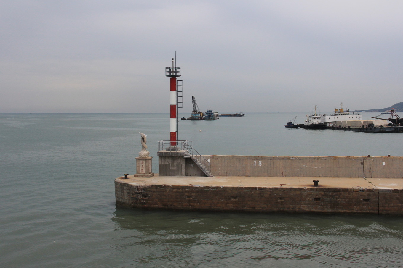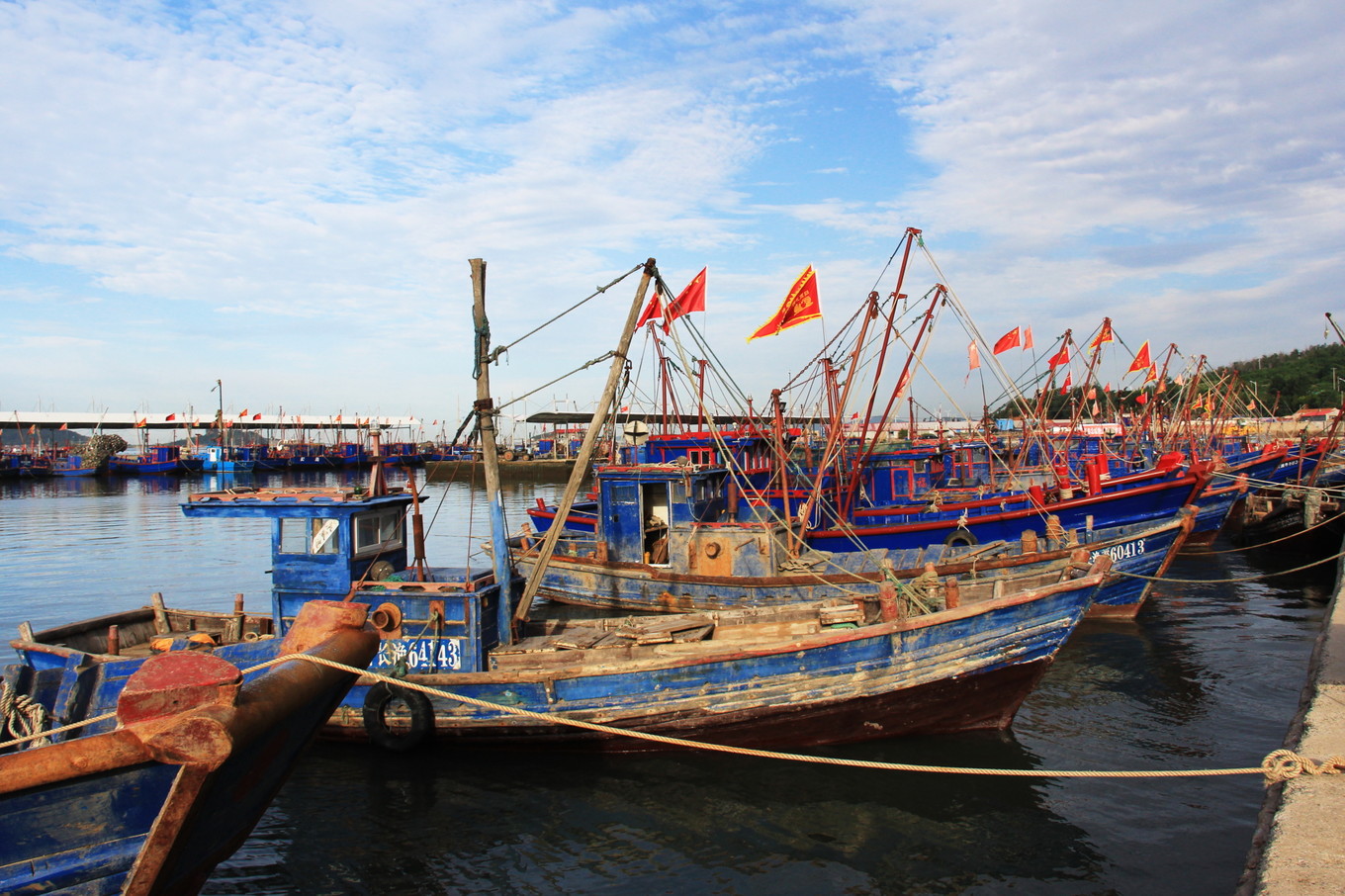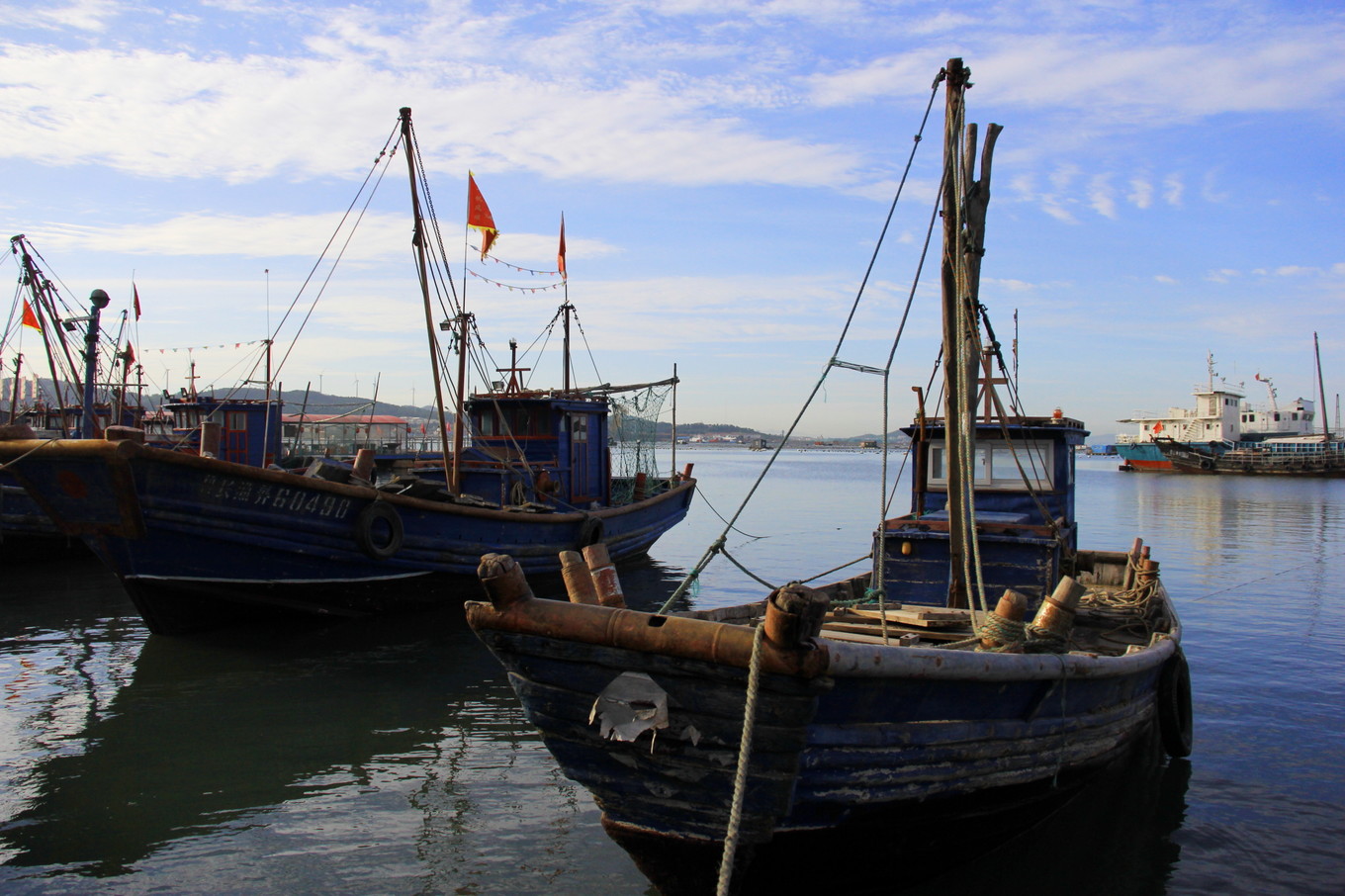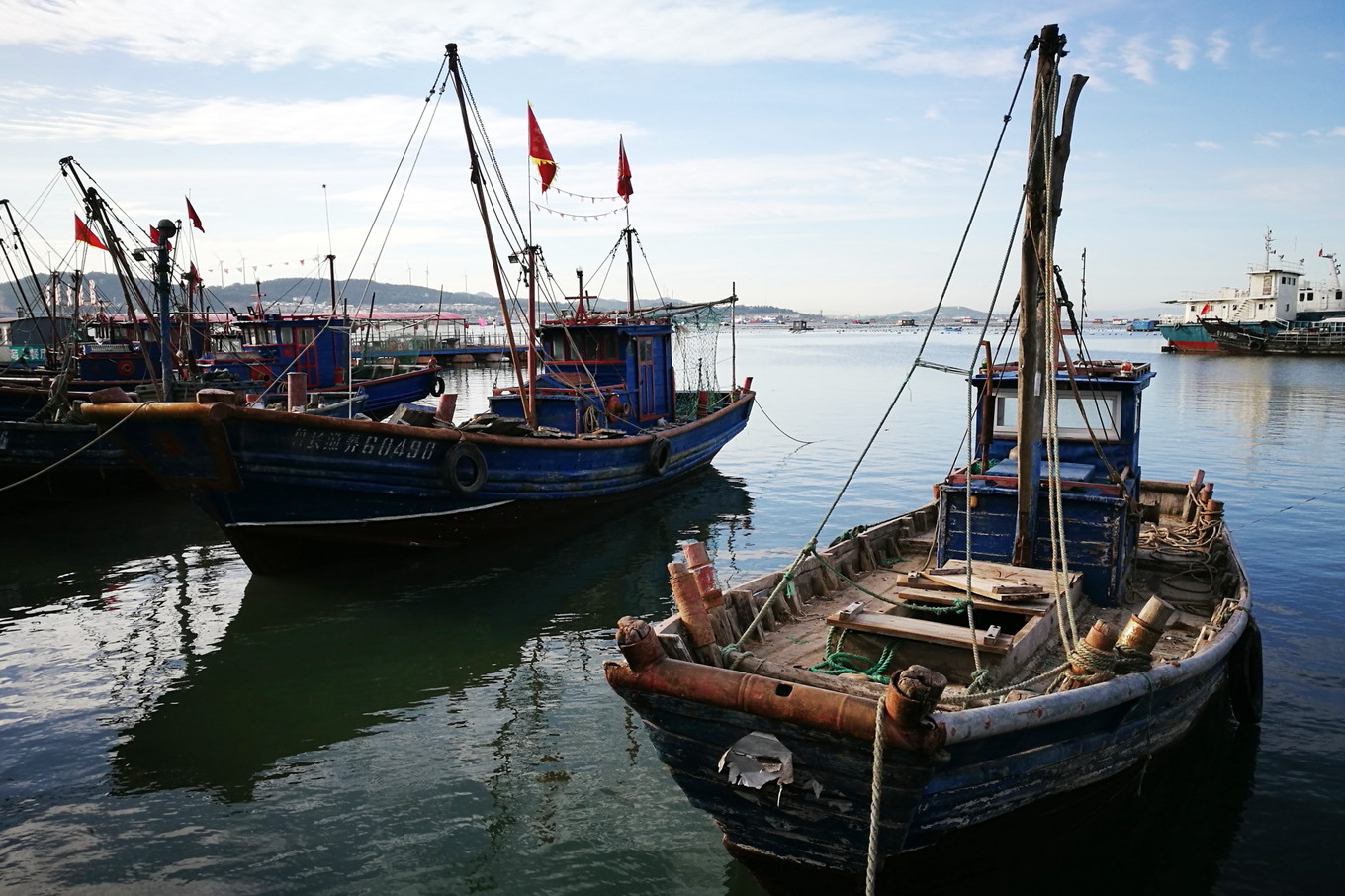 在北長(zhǎng)山鄉(xiāng)政府的對(duì)面是個(gè)漁業(yè)碼頭,現(xiàn)在還是休漁期,漁船都停靠在碼頭里,
