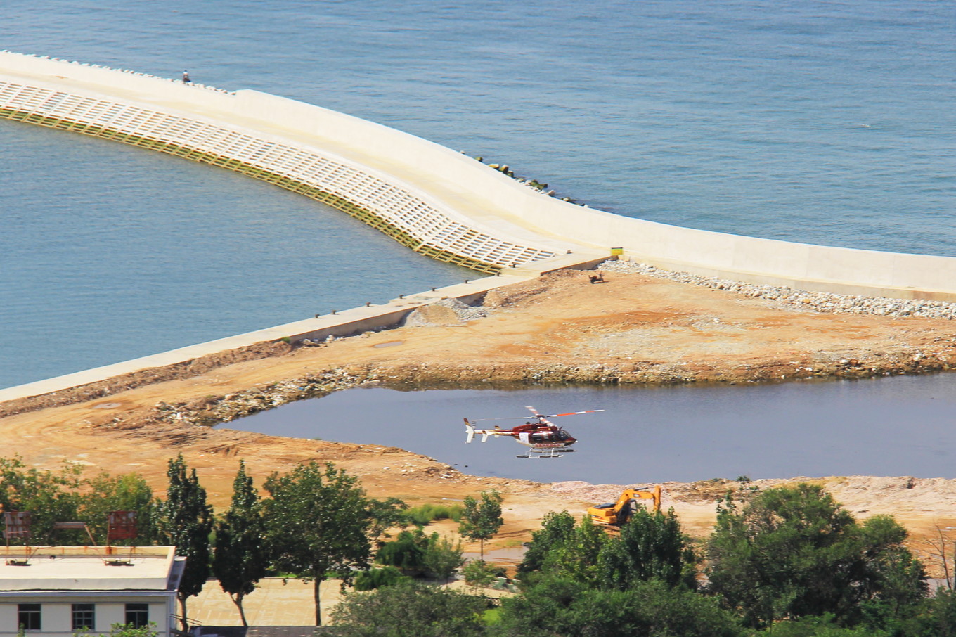 橋西面的連島大壩,大海在這大橋下形成了一個(gè)港灣