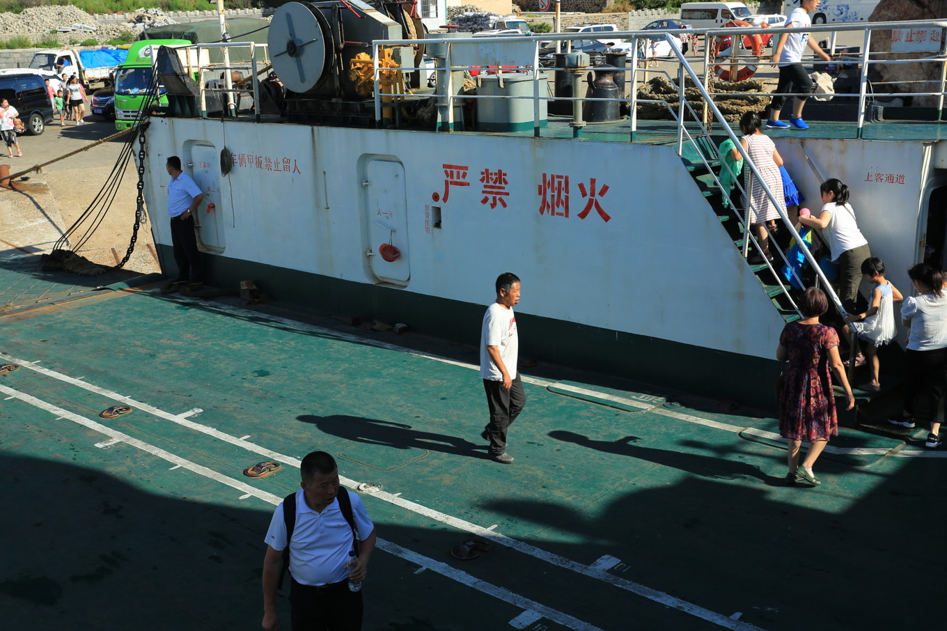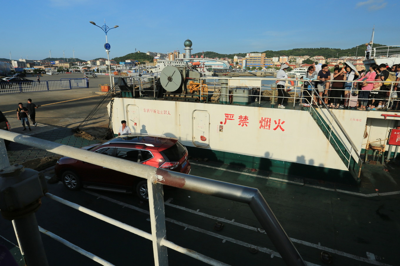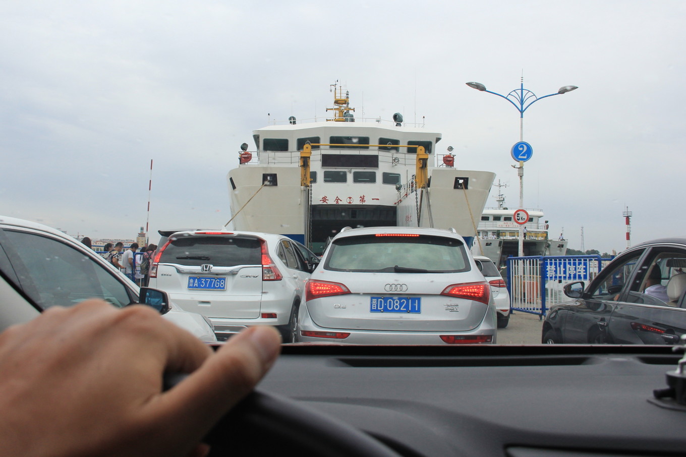 15:01到達(dá)蓬萊港(去長(zhǎng)島就是在蓬萊海洋極地世界北邊的碼頭),暑假快要過(guò)去了,下午上島的車(chē)也不是很多了,自駕車(chē)和車(chē)上的乘客都在這里從車(chē)上排隊(duì)即可,前方的綠色棚子是安檢,經(jīng)過(guò)安檢,會(huì)給一張安檢條,上面有乘客人數(shù),憑借此條到前方右側(cè)售票處購(gòu)買(mǎi)車(chē)和乘客的船票,買(mǎi)票需要身份證實(shí)名制,兒童半票,司機(jī)也需要購(gòu)票