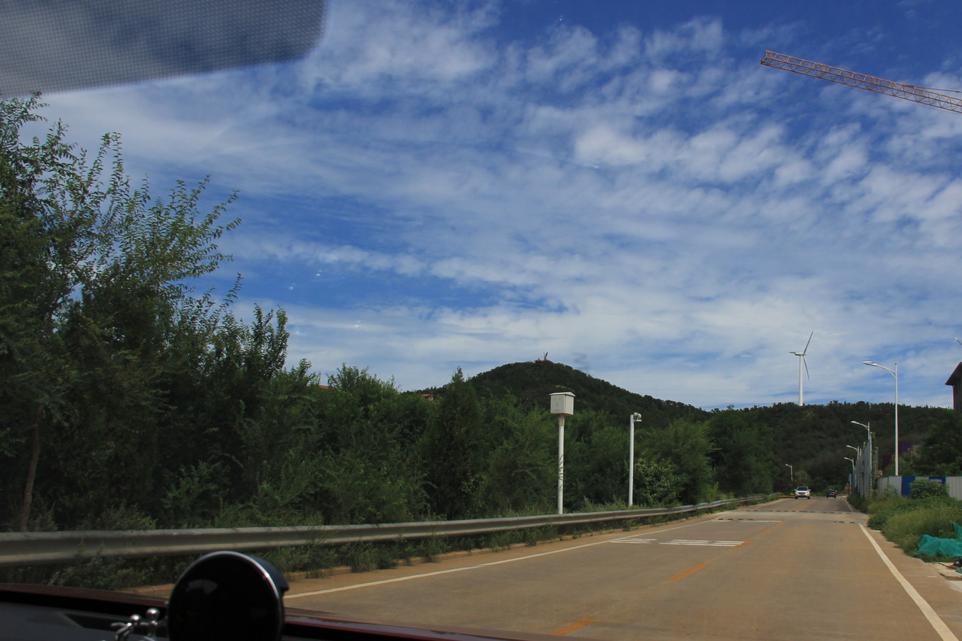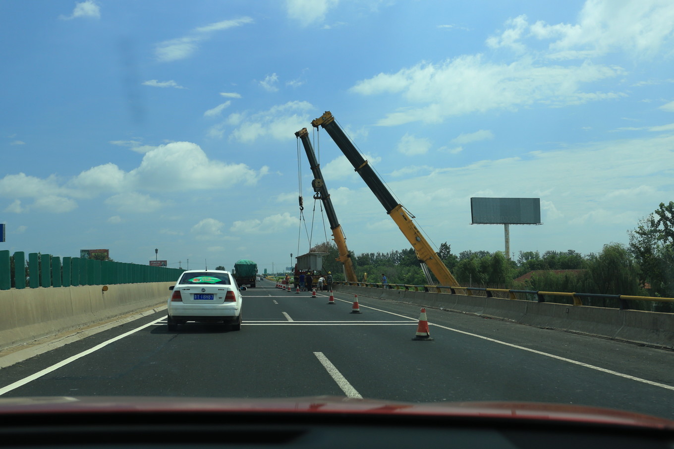 過(guò)了青州,天氣逐漸晴了,開(kāi)始看到藍(lán)天白云,路邊施工的吊車(chē)