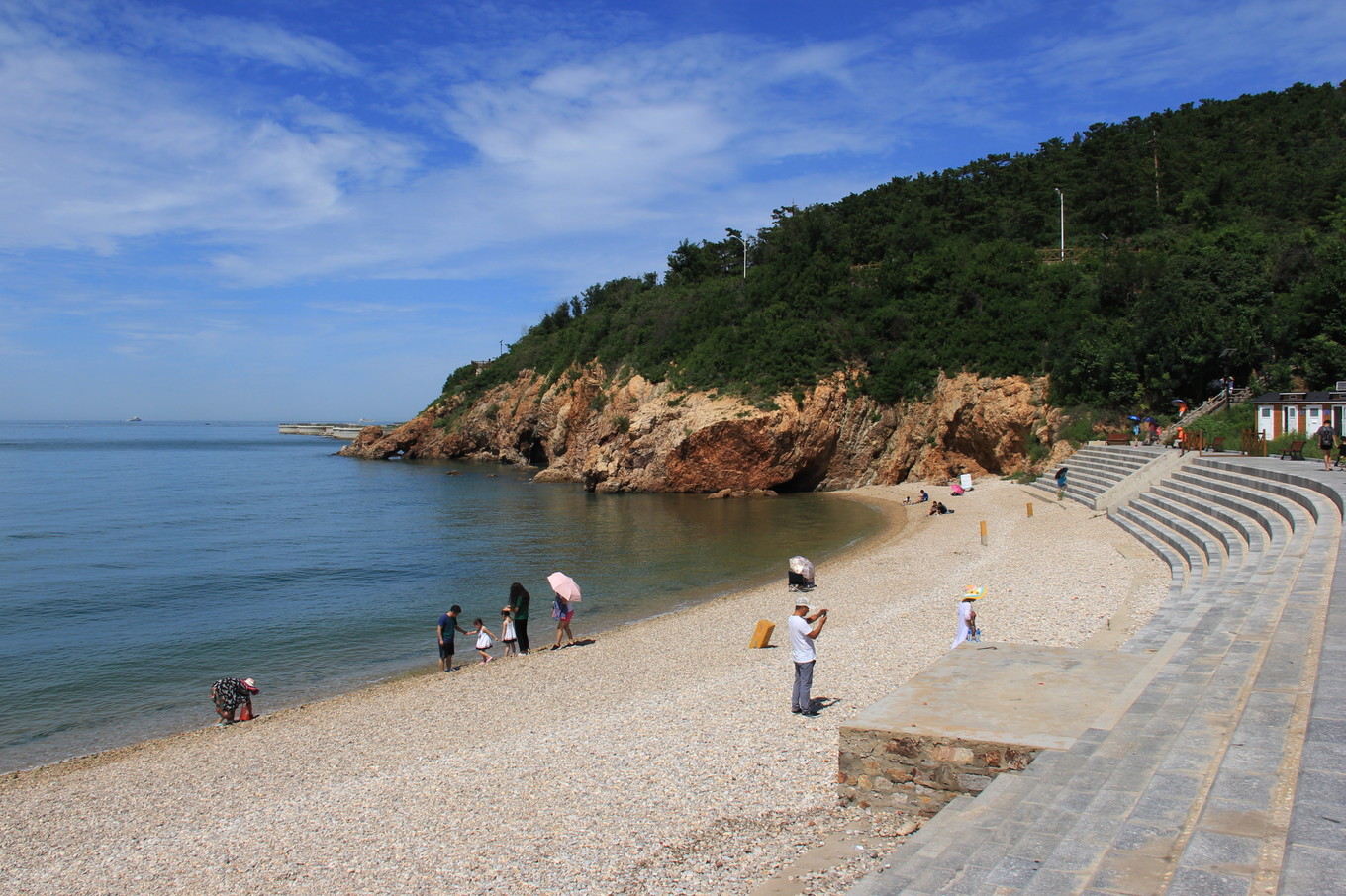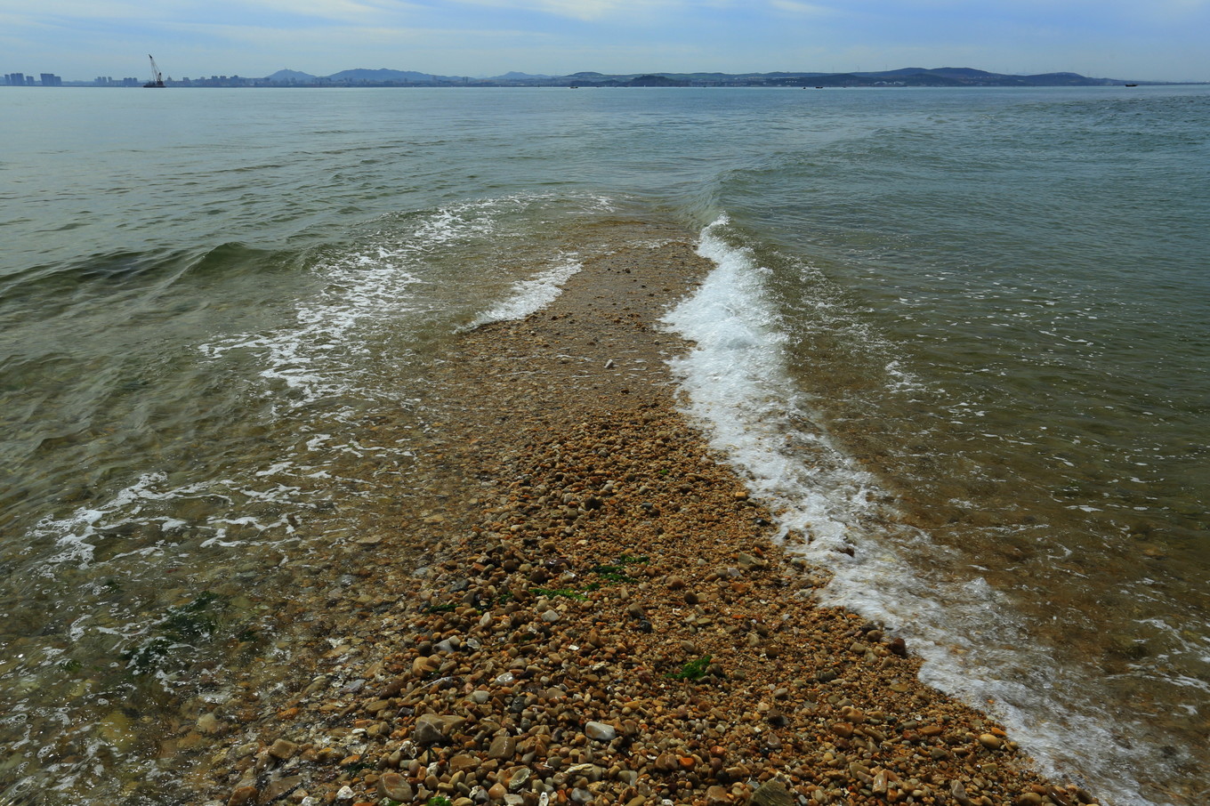 黃海和渤海的海浪相互拍來(lái),將這海灘堆積成了太極形的石堤,形成了長(zhǎng)山尾