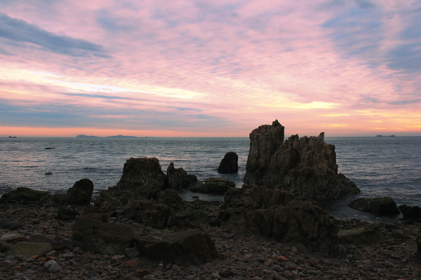 在花溝村附近的海邊,長(zhǎng)焦是可以拍到寶塔礁的
