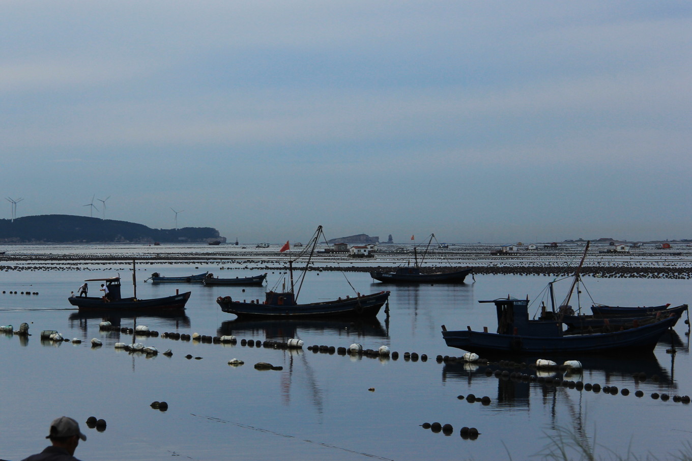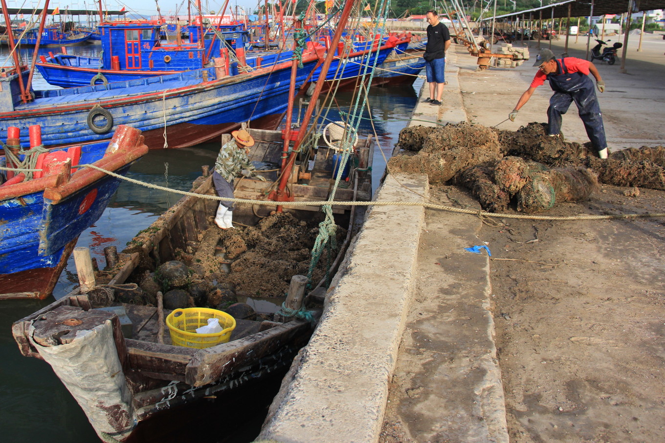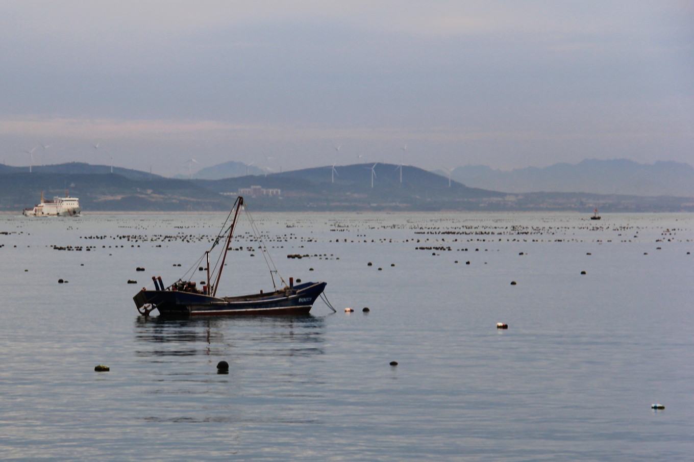 在碼頭上只有一只小船卸下養(yǎng)殖的扇貝和做簡(jiǎn)單的處理工作